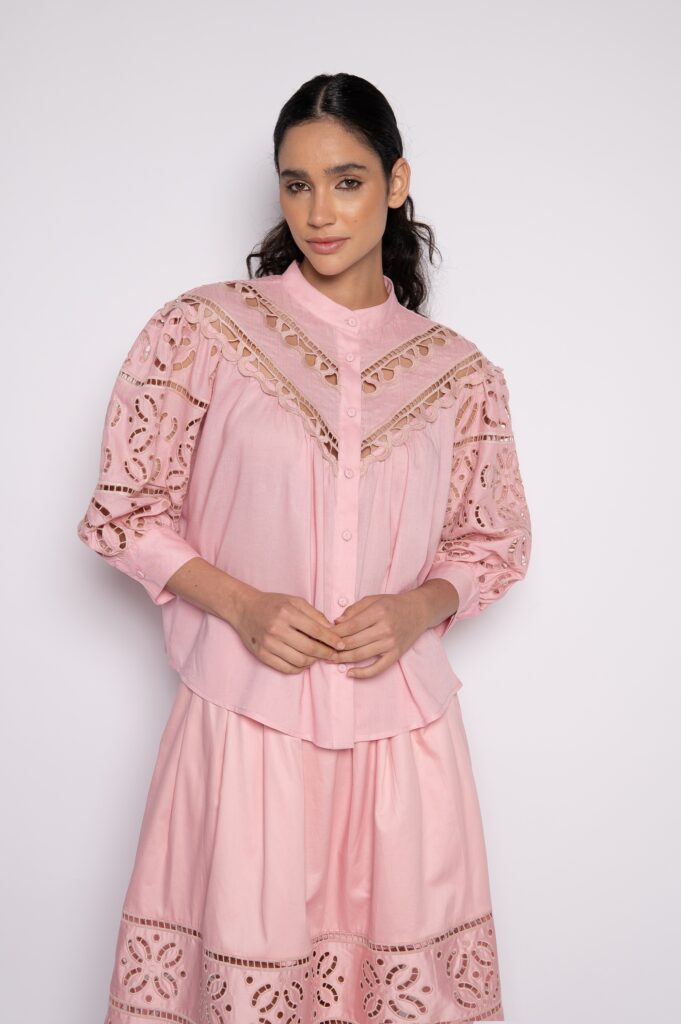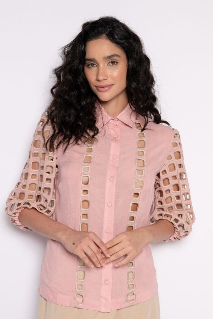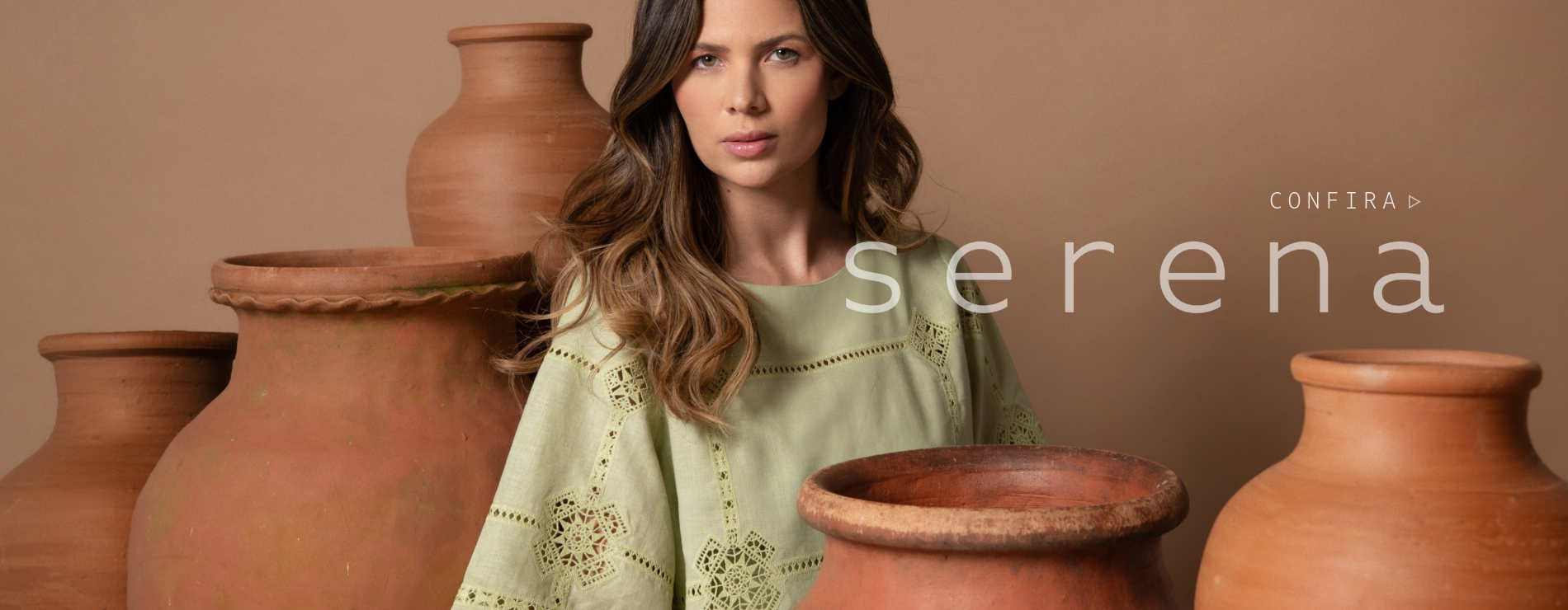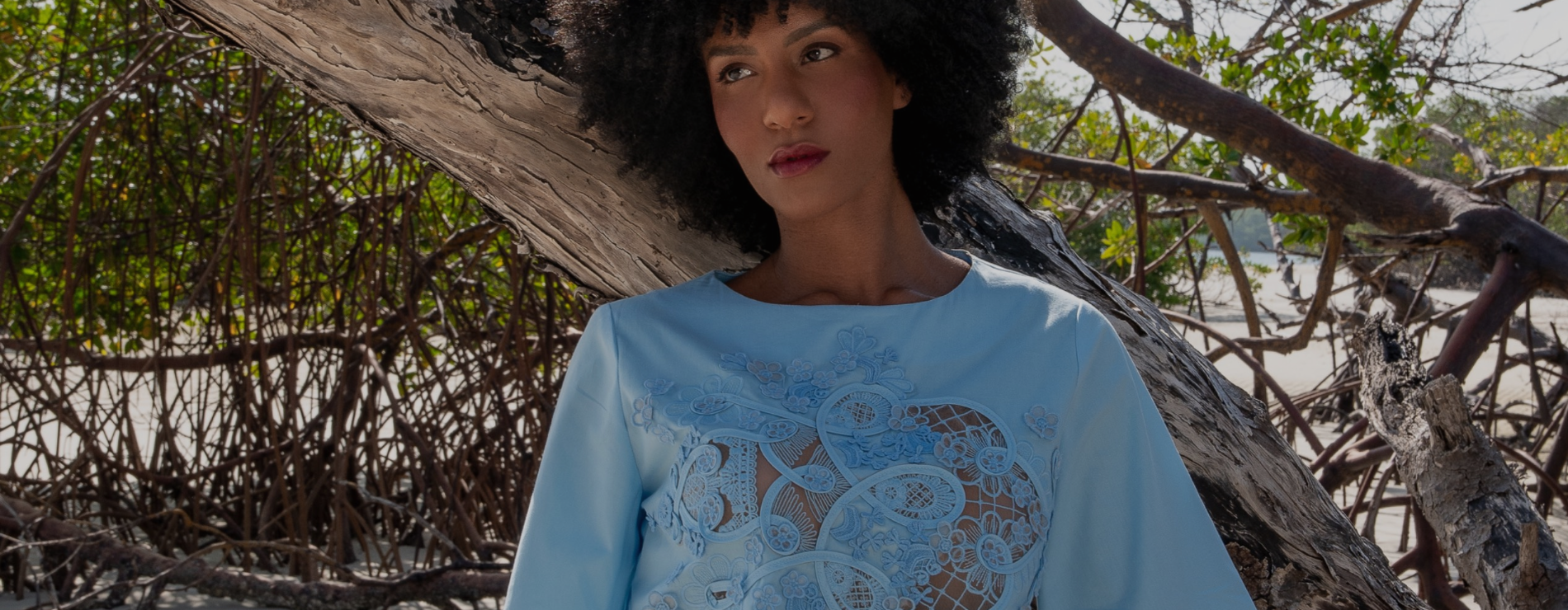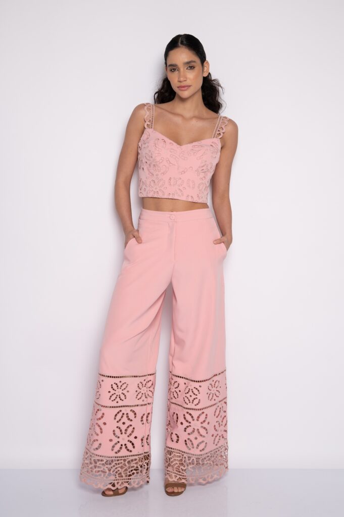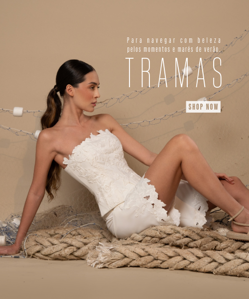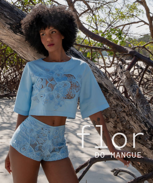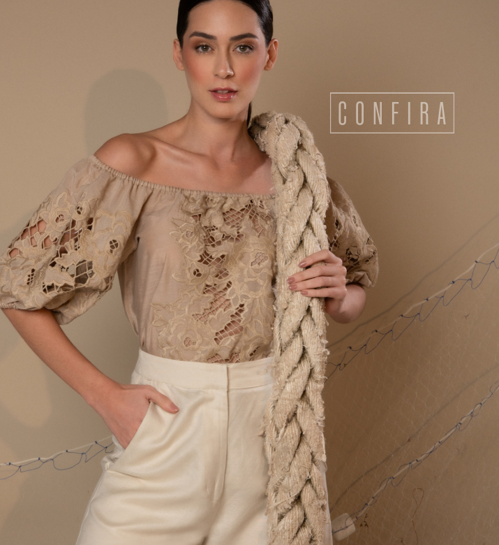 Redes de Richelieus são lançadas sobre linhos e algodões beges, brancos e perolados, abraçando, em detalhes ou completamente, mangas, bustos, barras, pernas e costas. Agulhas anzoleiras bordando e prespontando peças encantadoras como sereias pernambucanas. Um cardume elegante e atemporal composto por blusas, bata e bermudas; camisaria, calça e corselet; short, saias e vestido marmeid. Roupas híbridas em beleza sofisticada e liberdade confortável para navegar pelos dias e noites de verão.