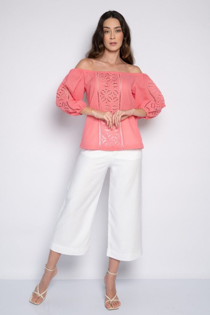 Blusa Cropped Bordada Branca – Carla