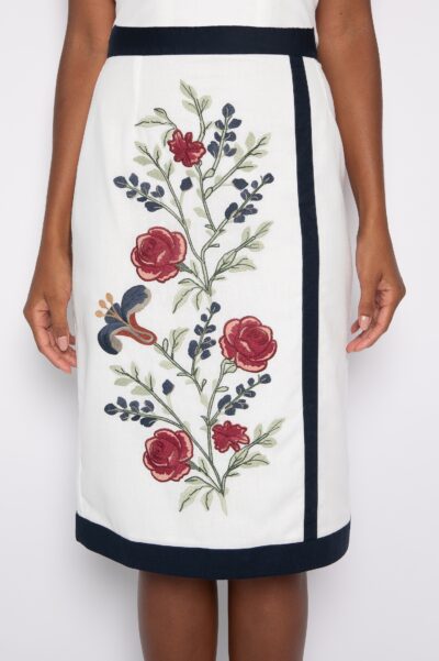 Saia Bordada Midi Off White – Simone