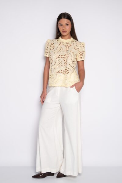 A nova coleção Marie Mercié celebra as raízes pernambucanas ao transformar memórias afetivas e heranças femininas em peças que unem delicadeza artesanal e elegância atemporal. Inspirada em relíquias guardadas por avós e bisavós, a coleção resgata o cuidado manual por meio de bordados florais, linho, renda e tons naturais, compondo um “Jardim Secreto” que revela o trabalho e a dedicação de três gerações de mulheres. Com silhuetas que equilibram romantismo e regionalismo — como camisas de corte preciso, pantalonas amplas e saias rendadas — as criações vestem a mulher contemporânea com leveza, sofisticação e feminilidade sutil, sem excessos.
