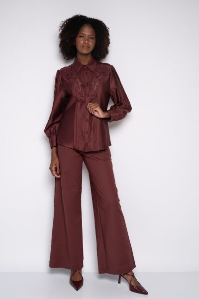 Camisa Bordada Vinho – Zenilda