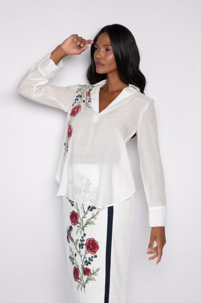Saia Bordada Midi Off White – Simone