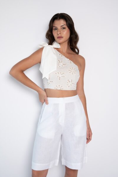 Calça Pantalona Bordada Branca/Azul – Lorena