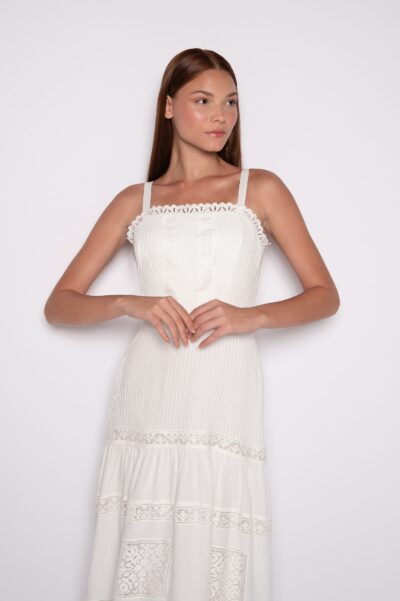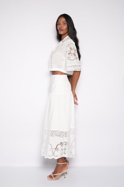 Saia Midi Franzida Bordada Urucum – Tainá