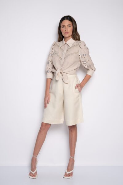 Blusa bordada com mangas bufantes branco/bege – Cibele