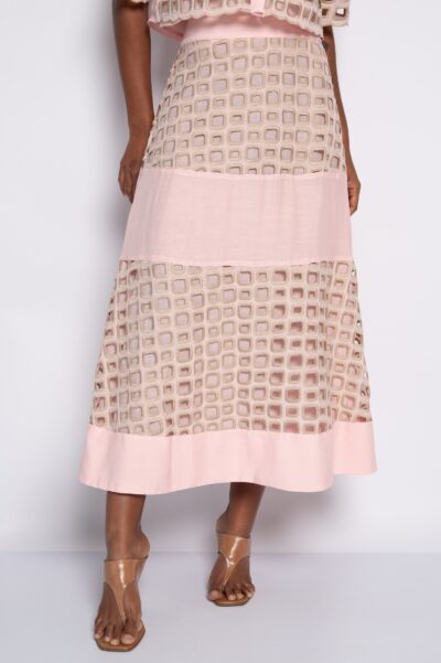 Saia midi bordada marrom – Suzana