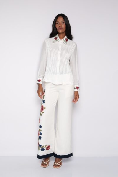 Calça pantalona bordada Off White – Analú