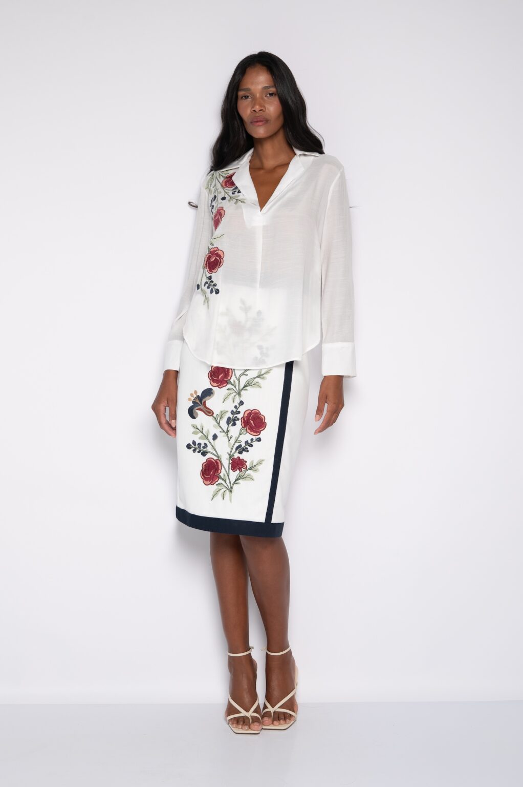 Saia Bordada Midi Off White – Simone