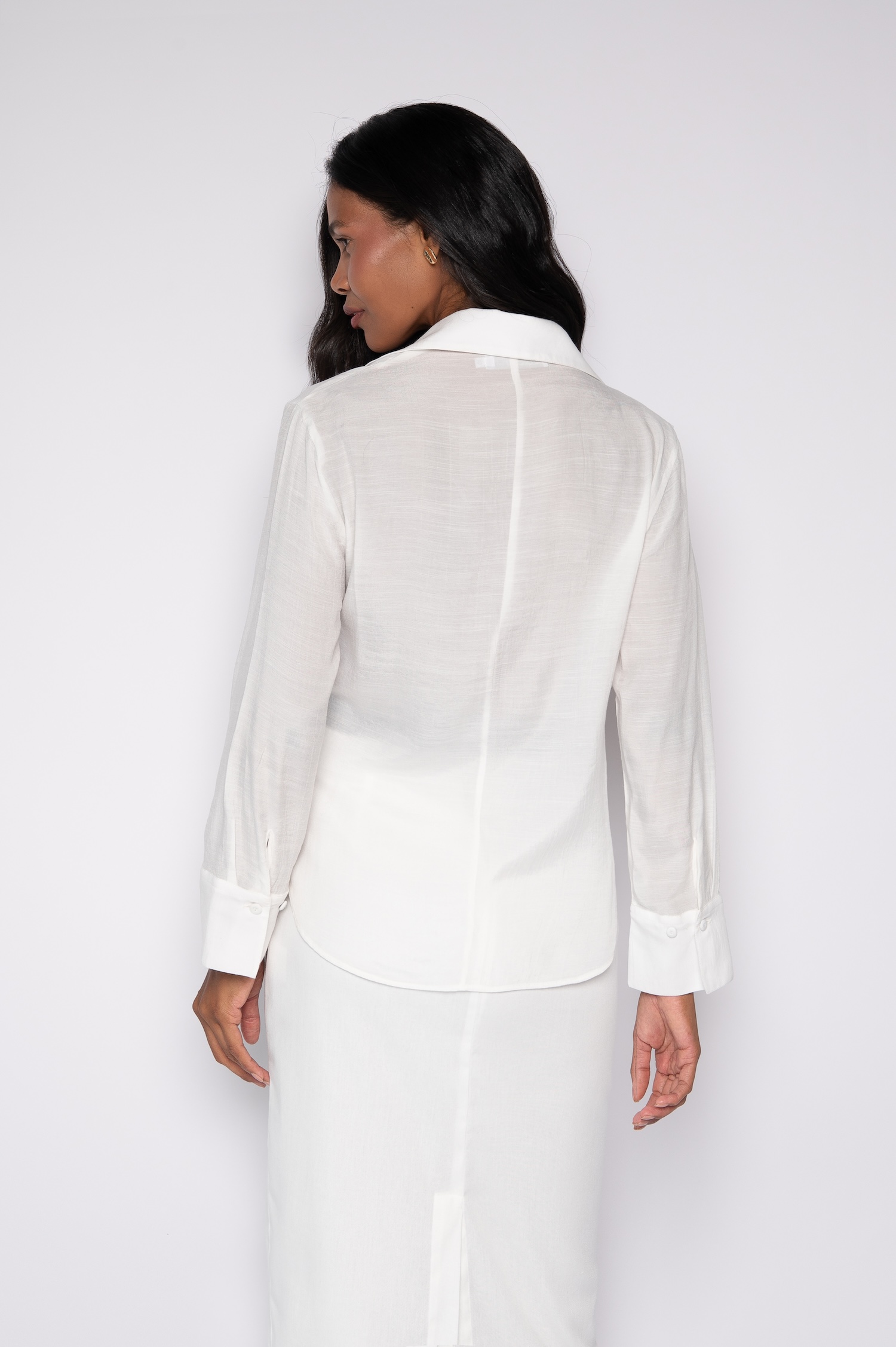 O abotoamento nos punhos adiciona acabamento refinado, enquanto permite ajuste confortável ao vestir.