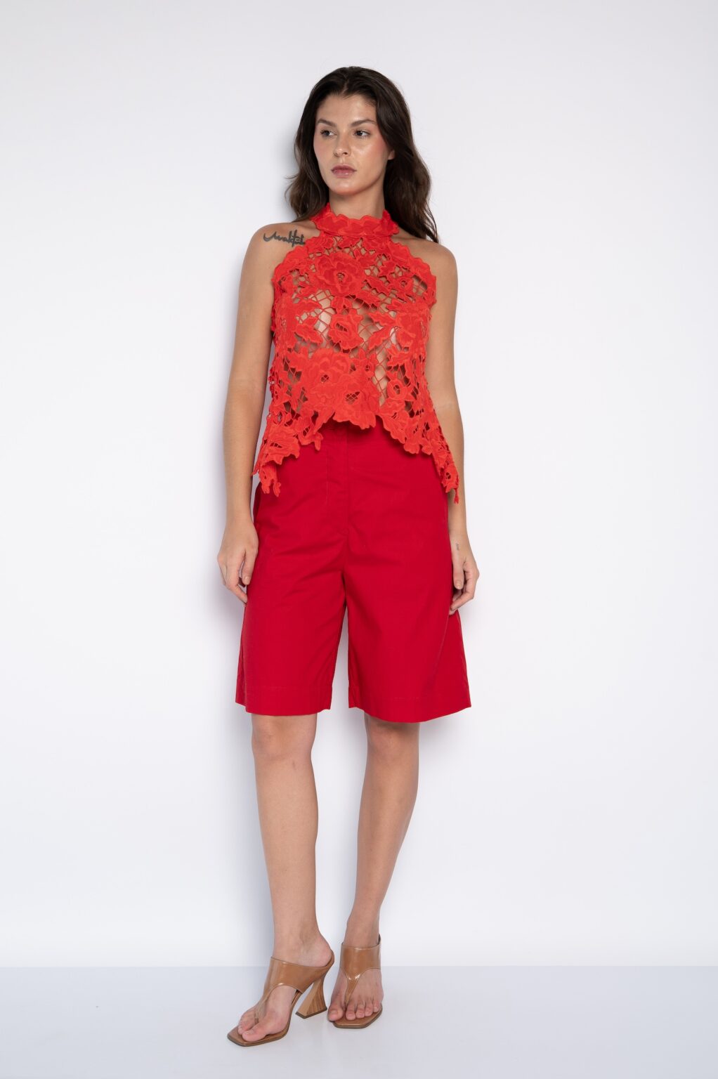 A modelagem ajustada realça a silhueta sem limitar conforto. Ademais, o corte bem estruturado cria equilíbrio entre cintura, quadril e pernas, favorecendo diferentes biotipos. Você utiliza a bermuda em passeios, viagens ou compromissos informais com total liberdade.