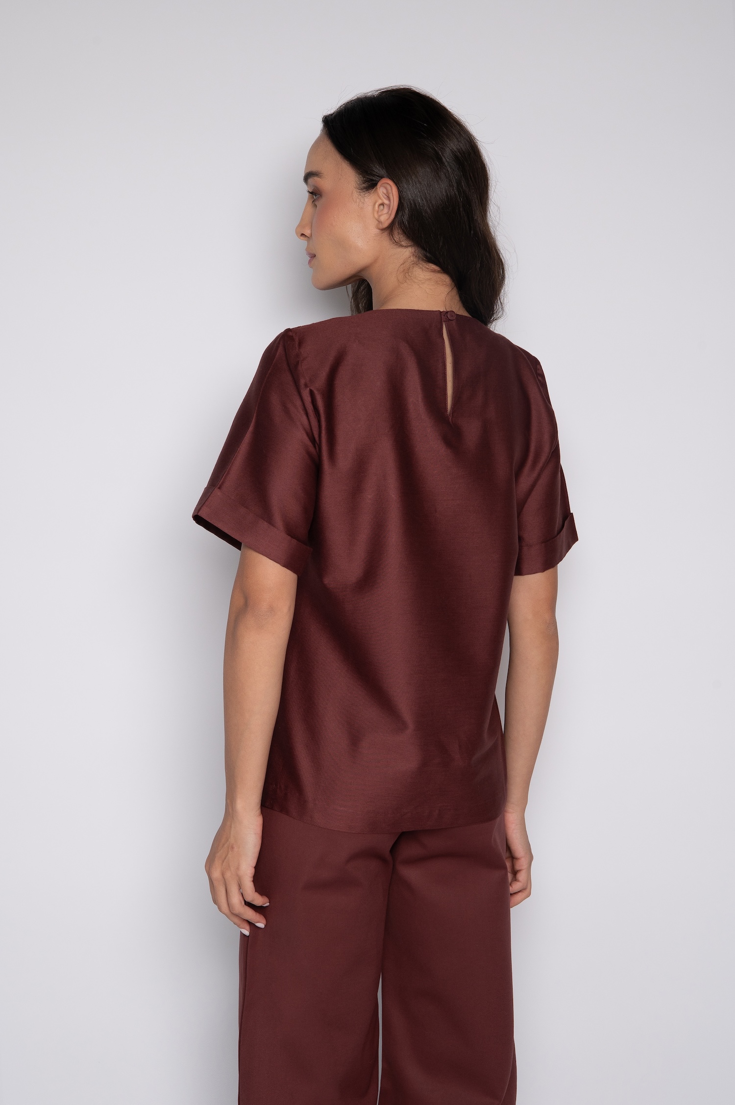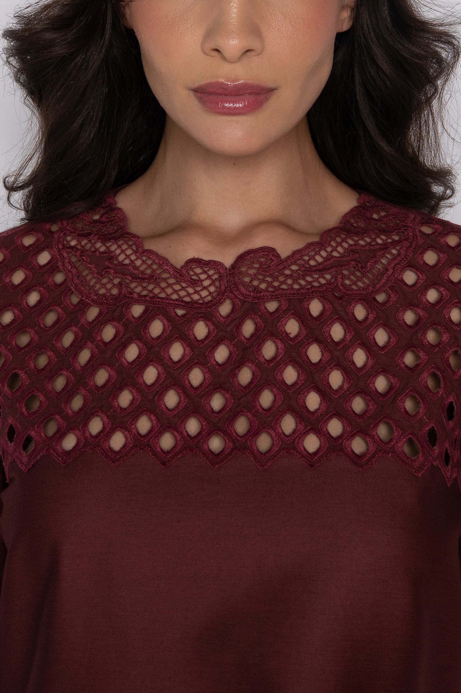 Blusa Bordada Com Mangas Curta Vinho Berry – Ceça