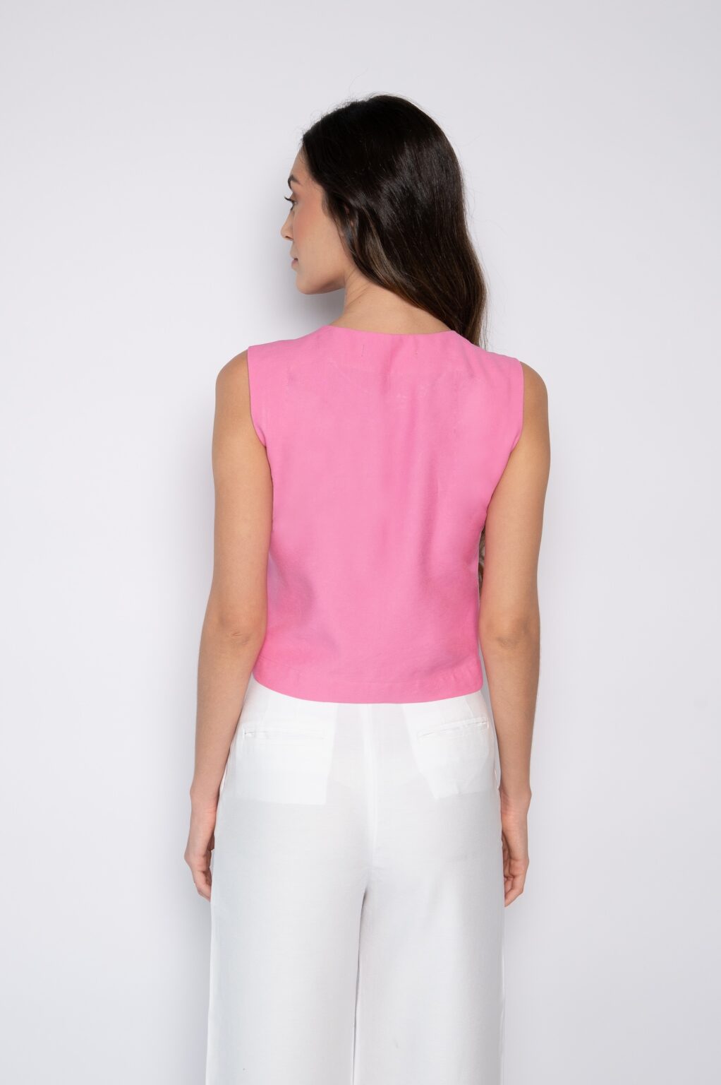 Com modelagem cavada, essa blusa valoriza os ombros e realça o visual com um toque moderno e ousado, sem exageros.