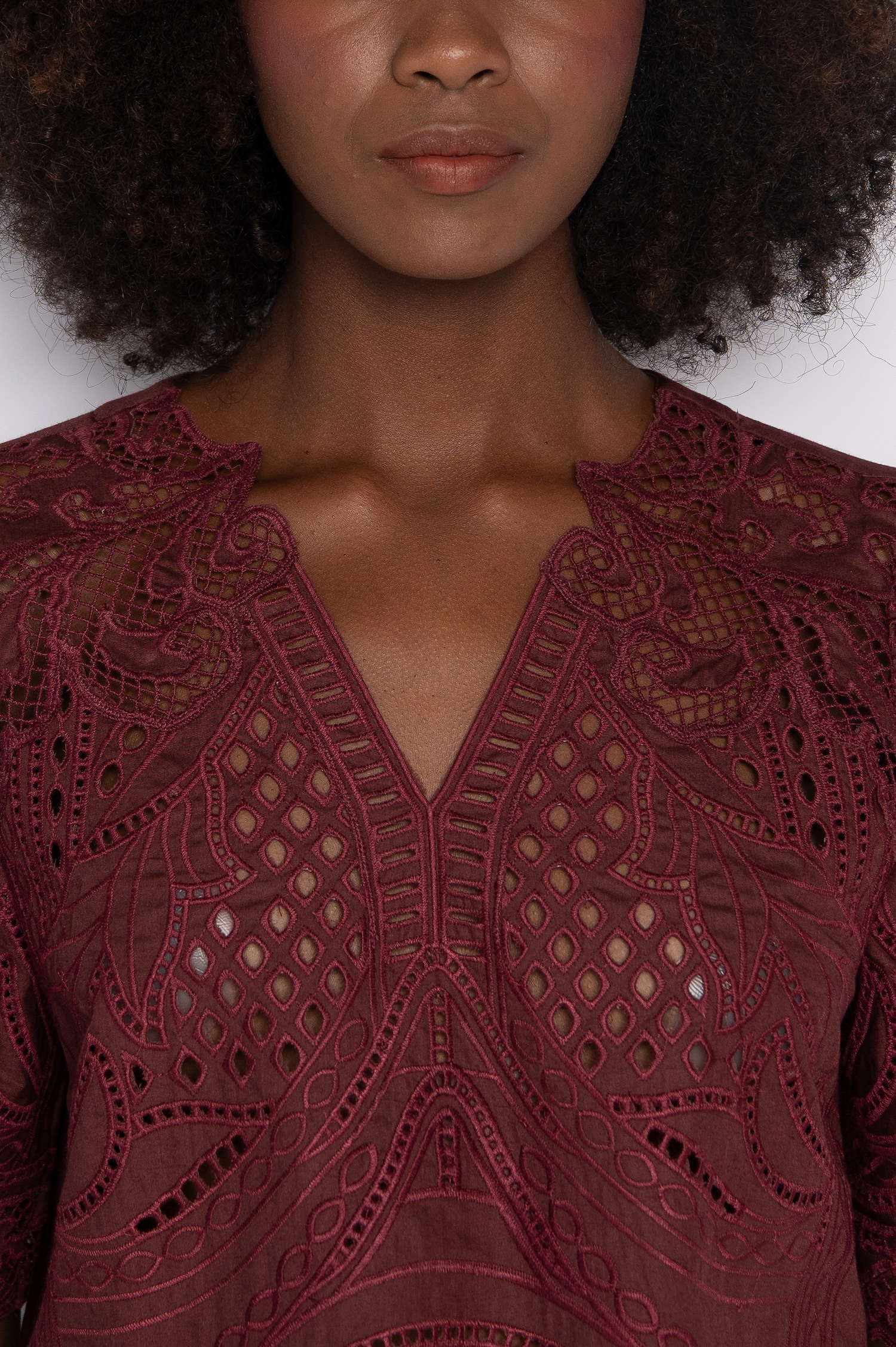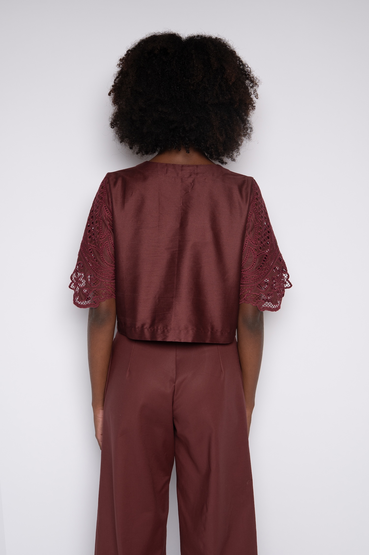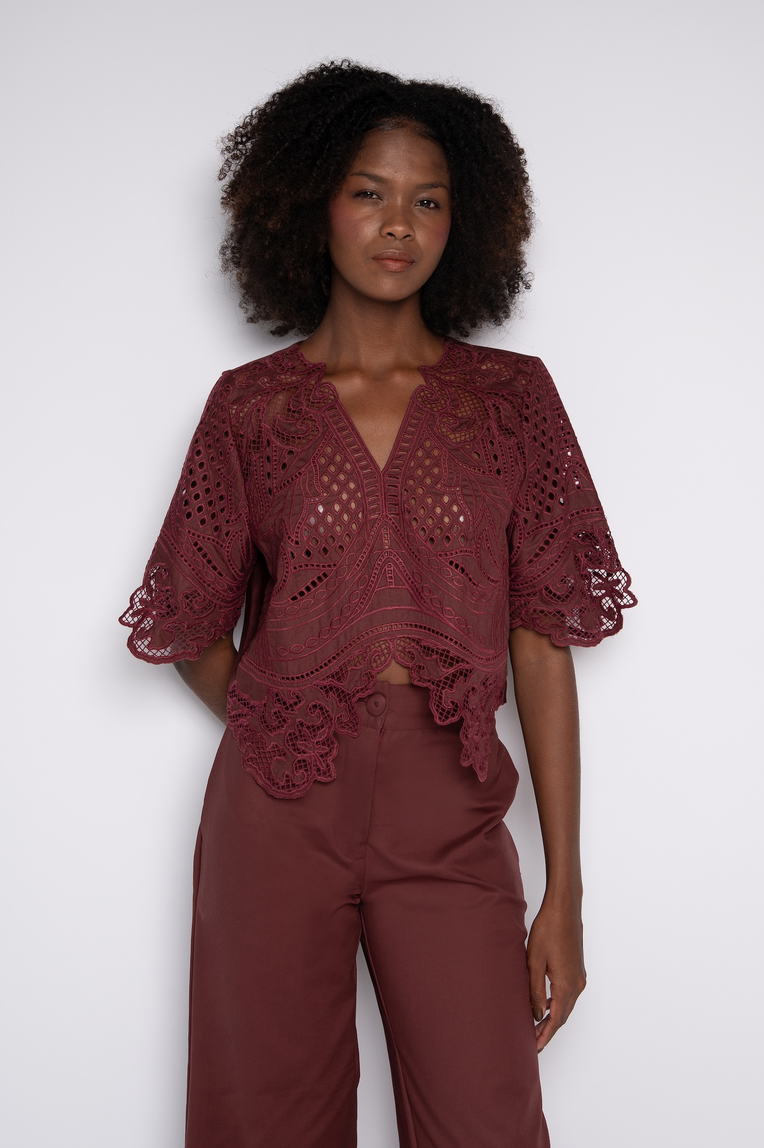 Blusa Cropped Bordada Com Decote V Vinho Berry – Aurora