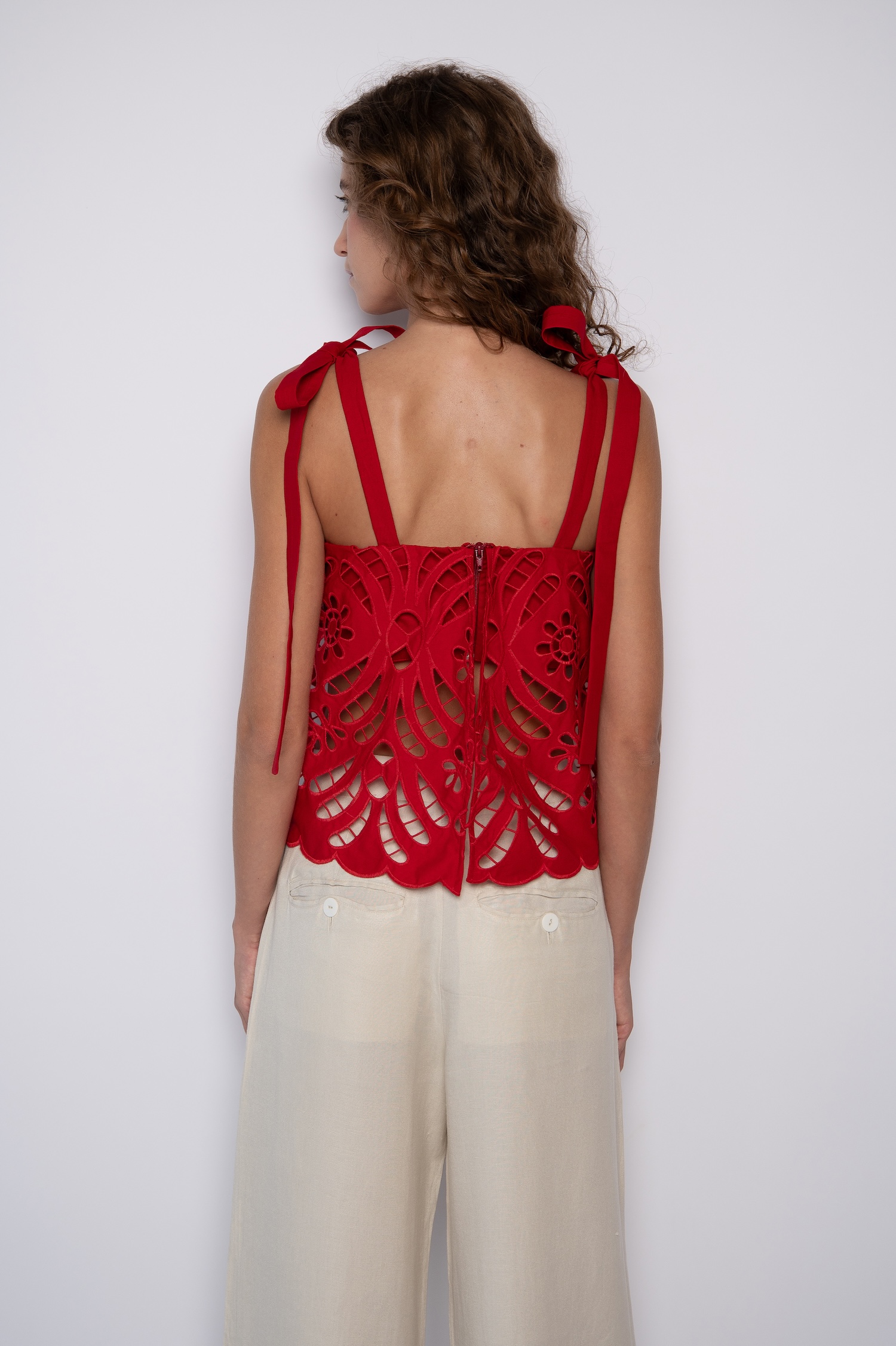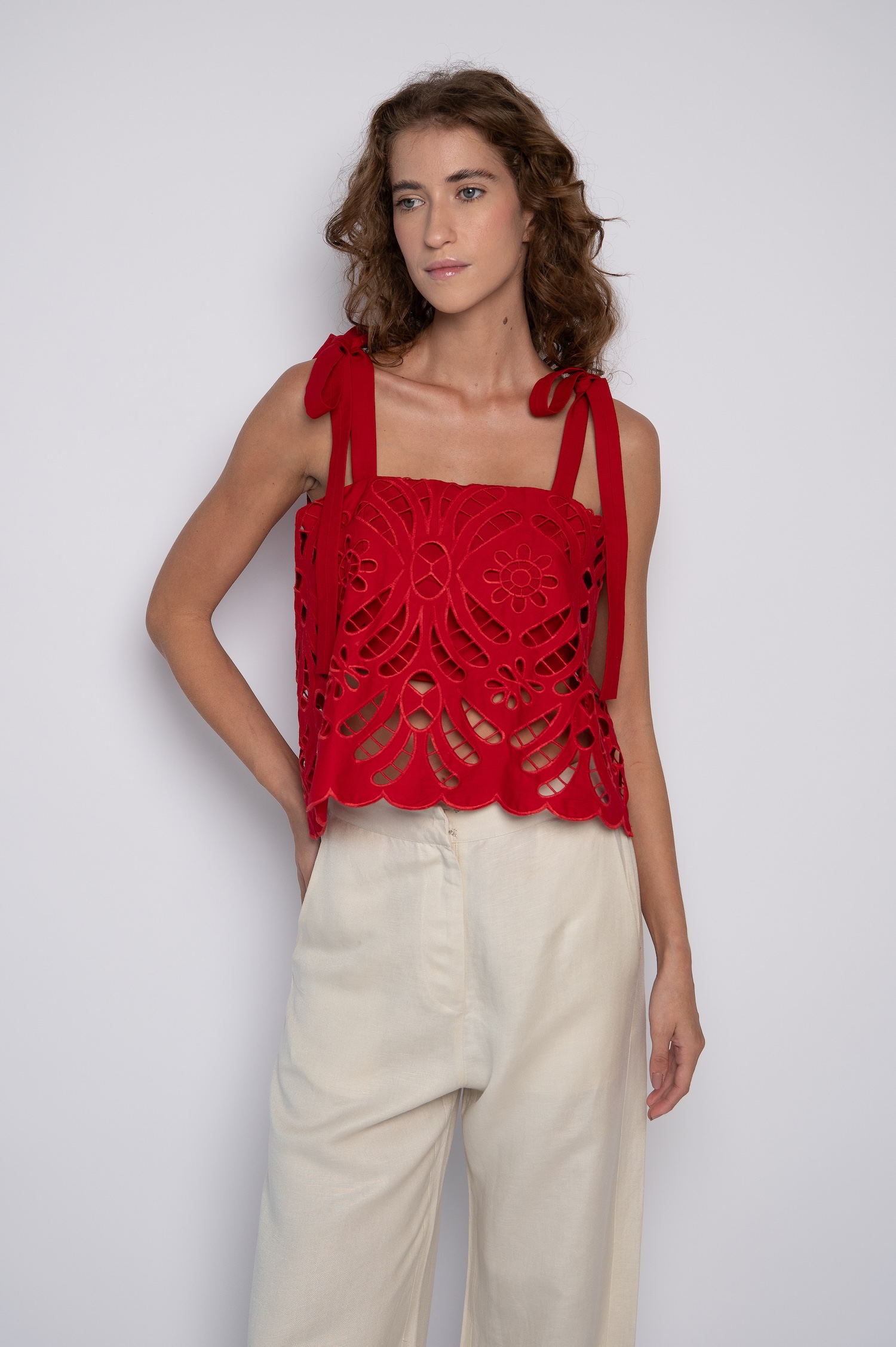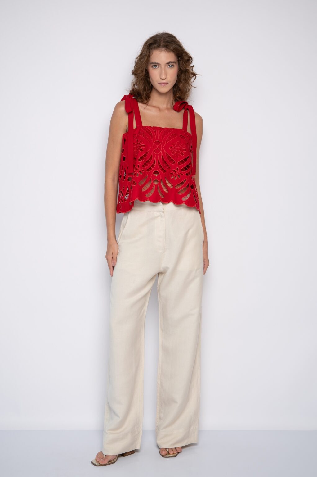 Blusa Cropped Bordada com Decote Quadrado Vermelha – Vivi