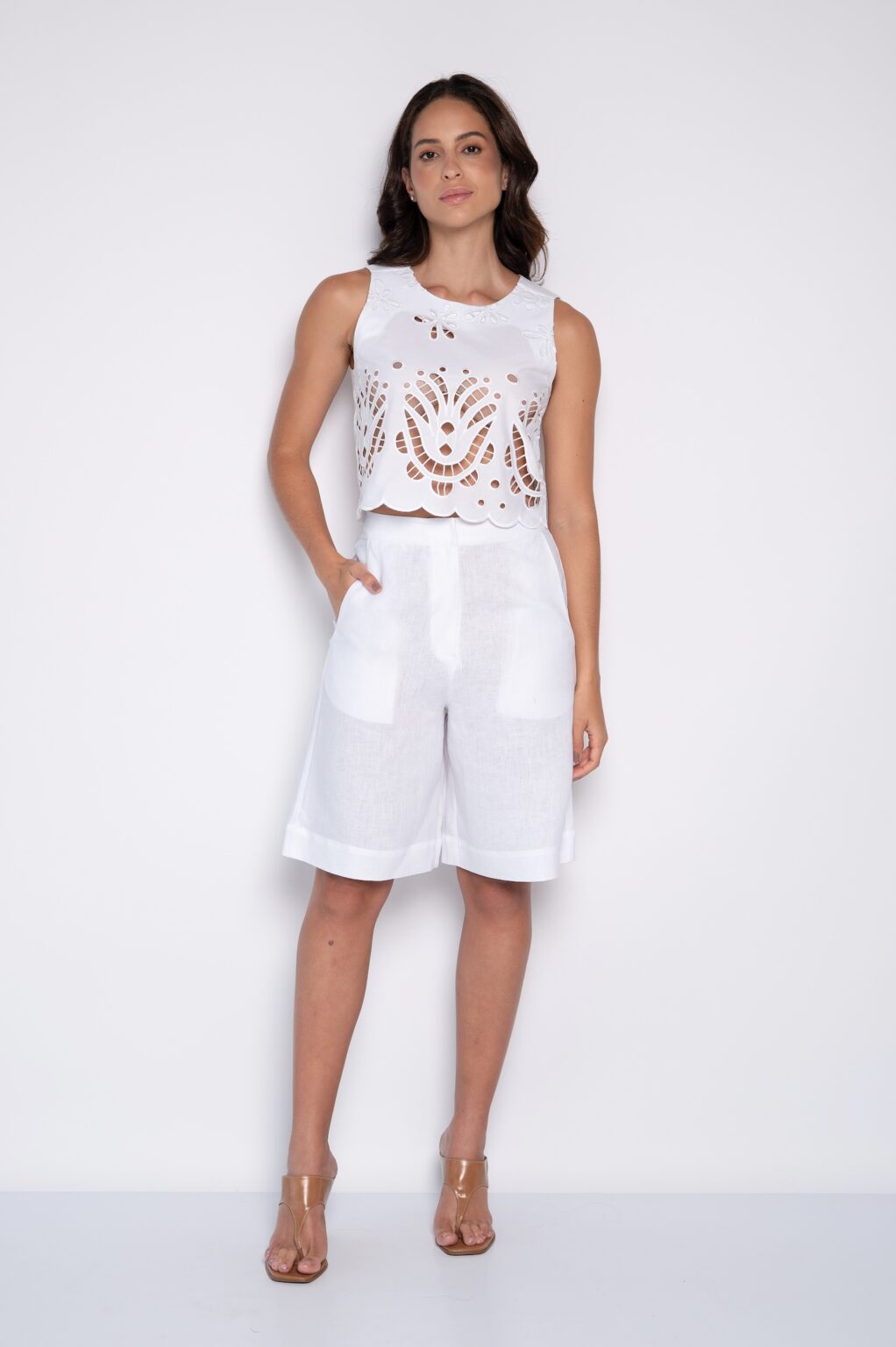 Além de linda, a blusa cropped bordada oferece excelente caimento. O corte foi pensado para valorizar o corpo, mantendo o conforto e a leveza em cada movimento.