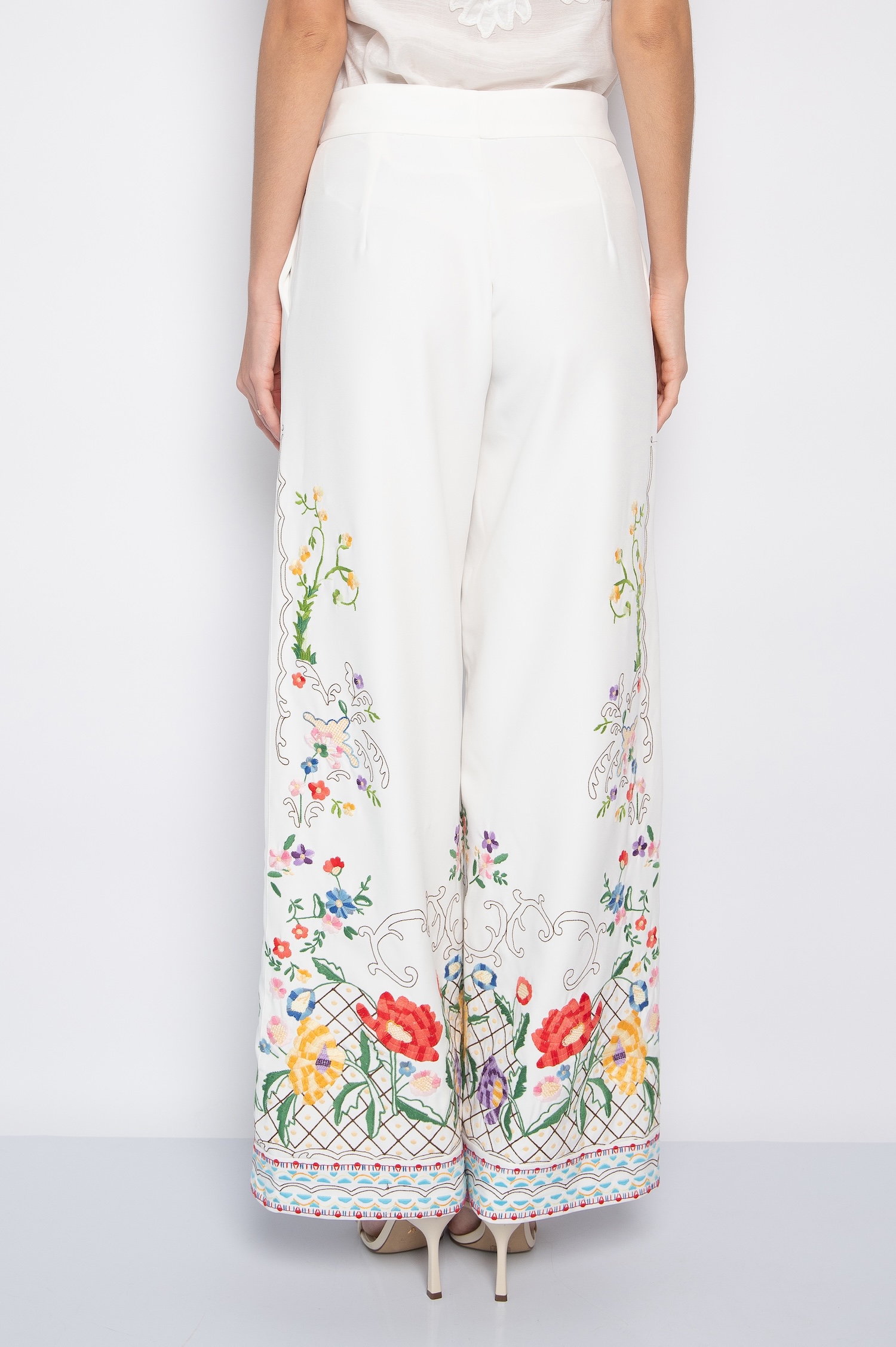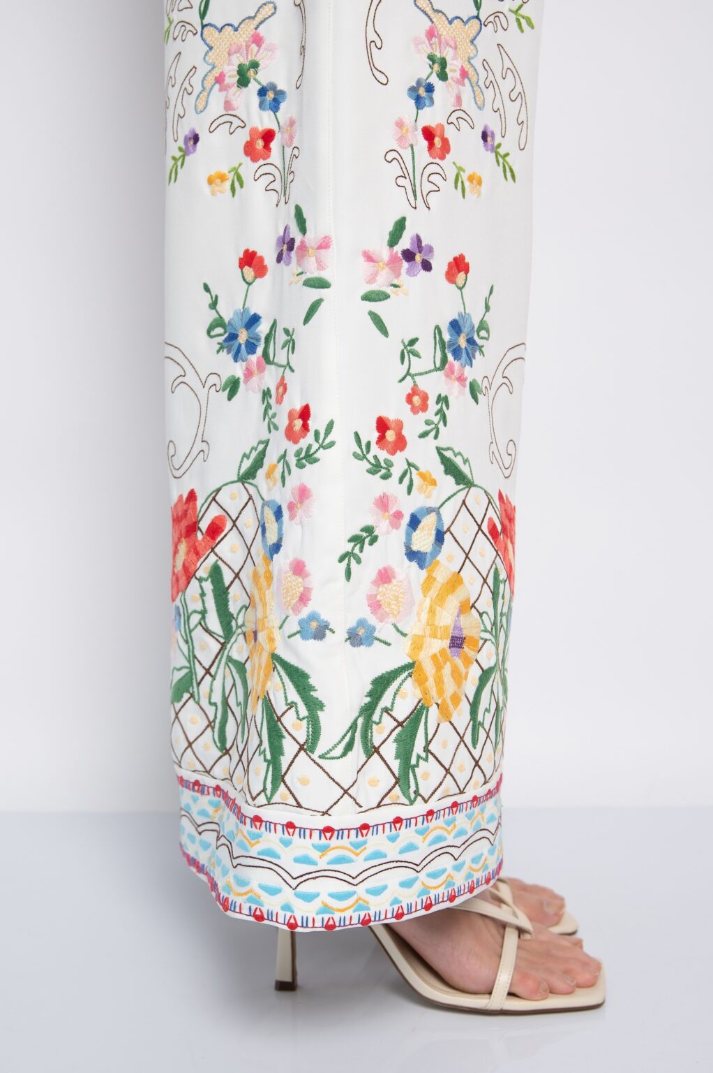 Calça Pantalona Bordada Mini Florais Off White – Lurdes