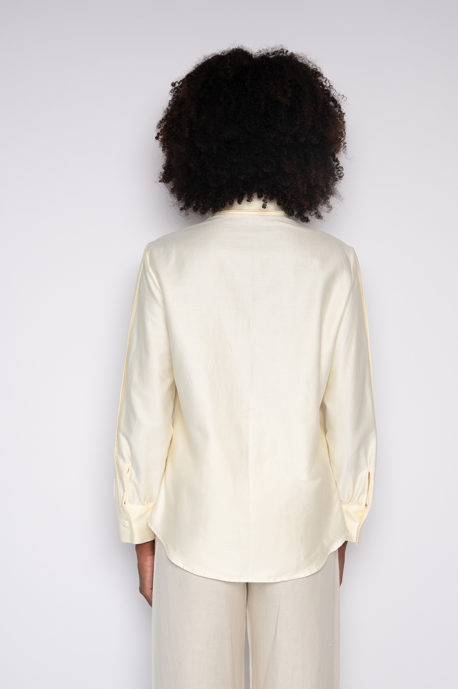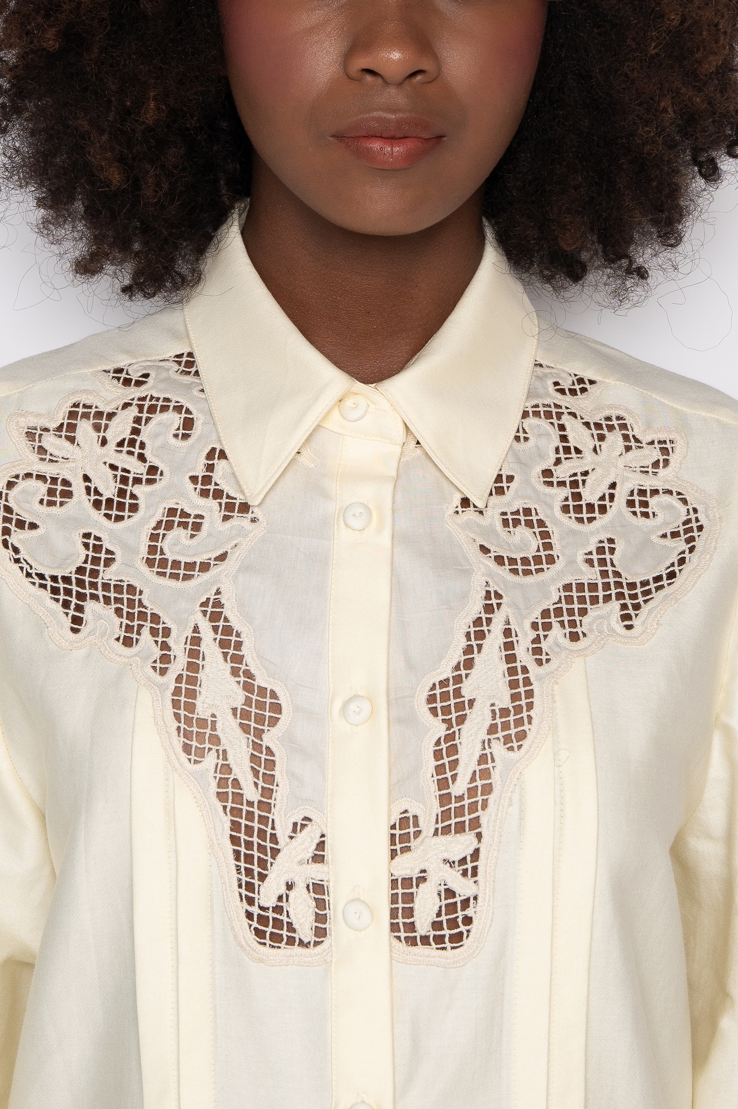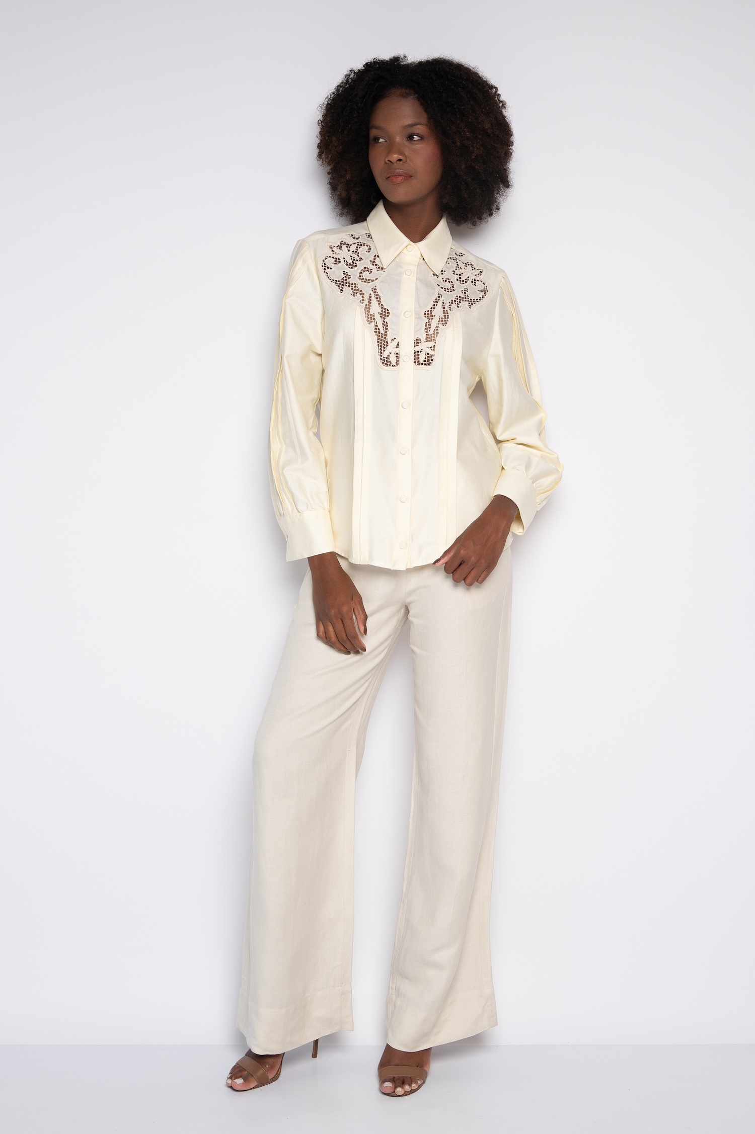 Camisa Bordada Com Mangas Bufante Creme – Olivia