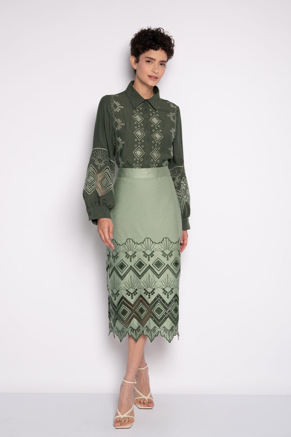Saia Midi Bordada Verde Claro – Milena