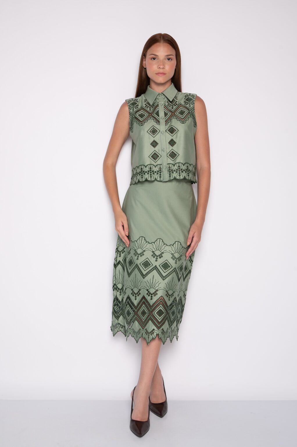 Saia Midi Bordada Verde Claro – Milena
