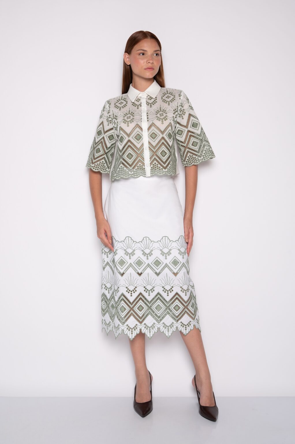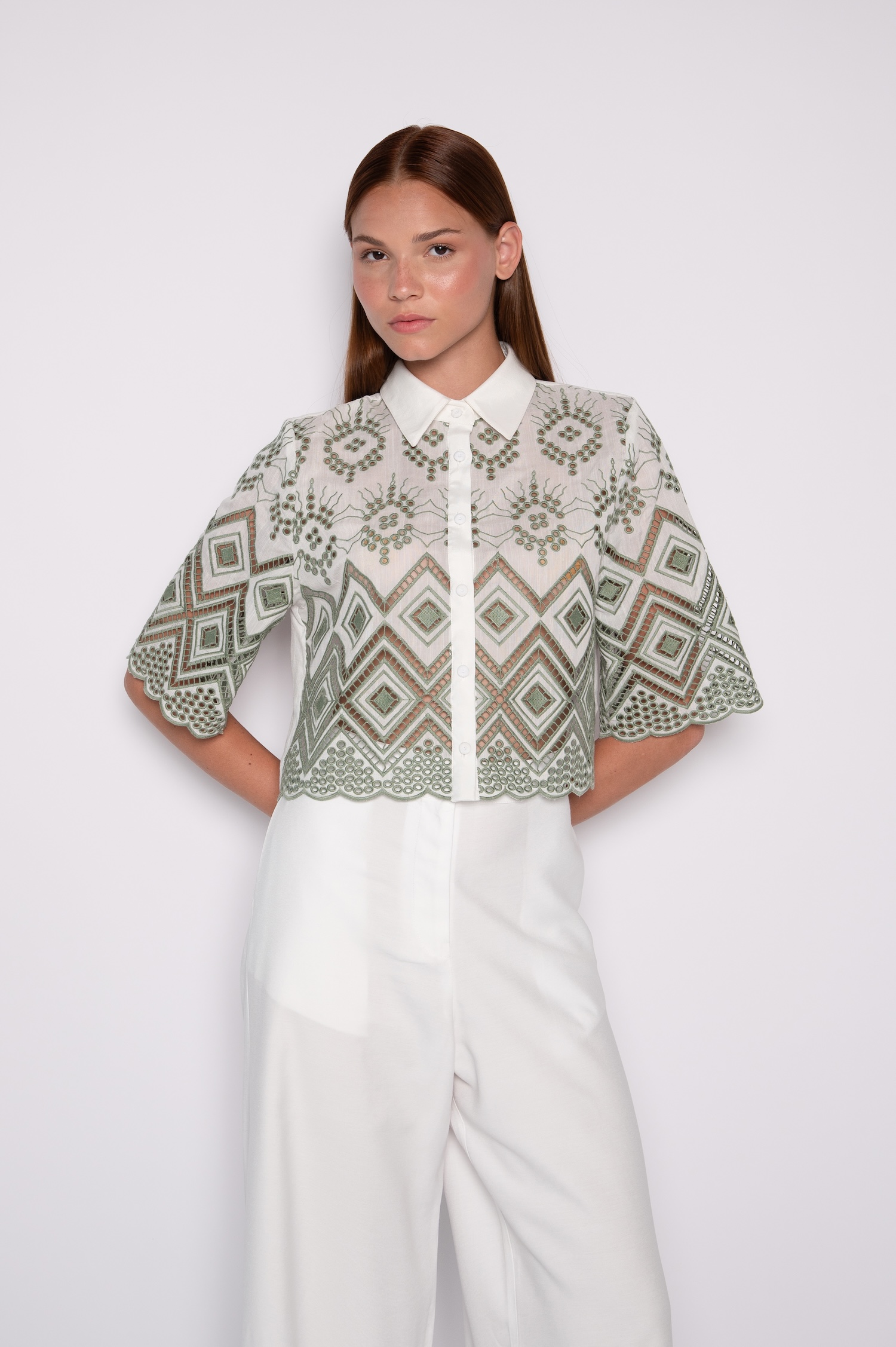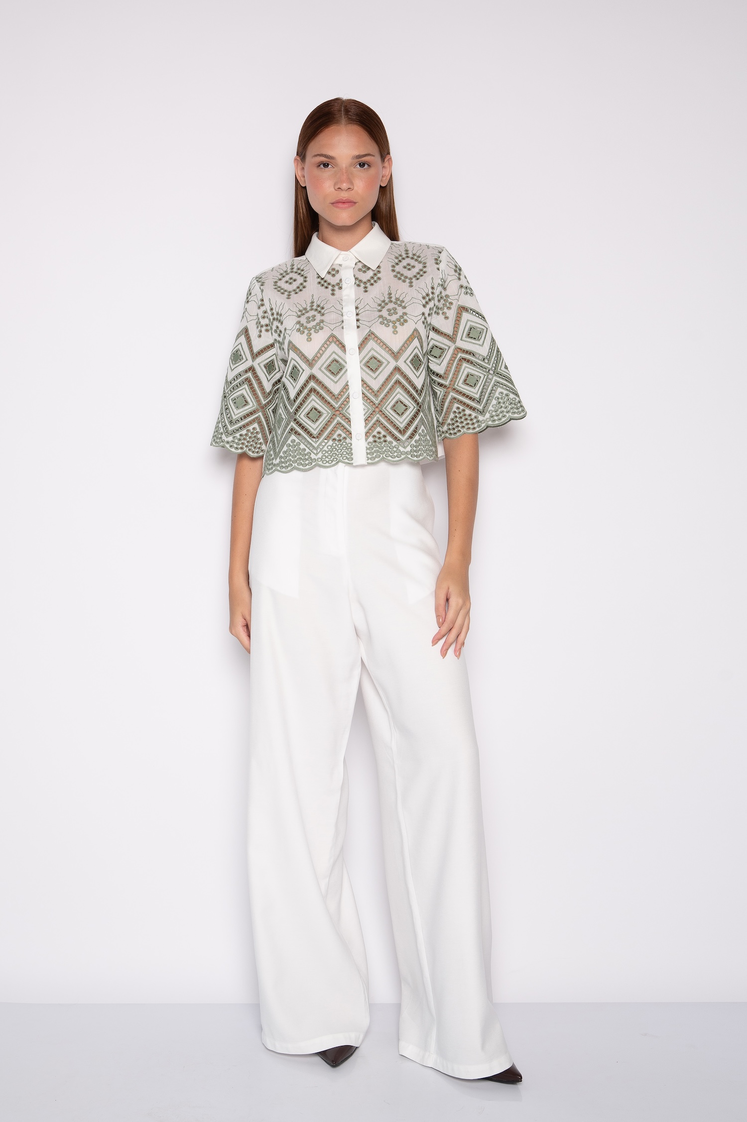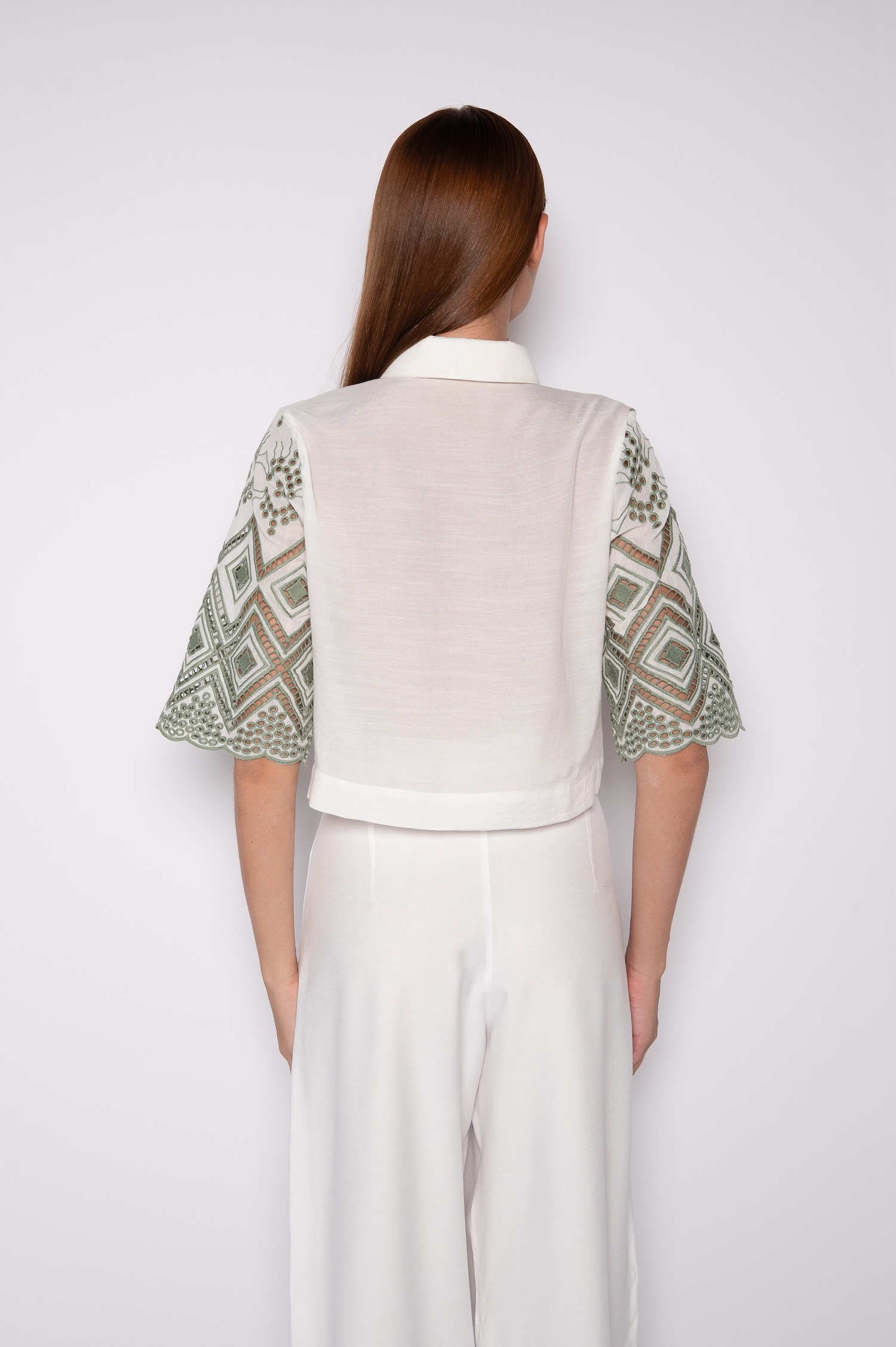 Além do visual refinado, a camisa cropped bordada feminina oferece praticidade. Dessa maneira, você cria combinações versáteis com poucas peças.