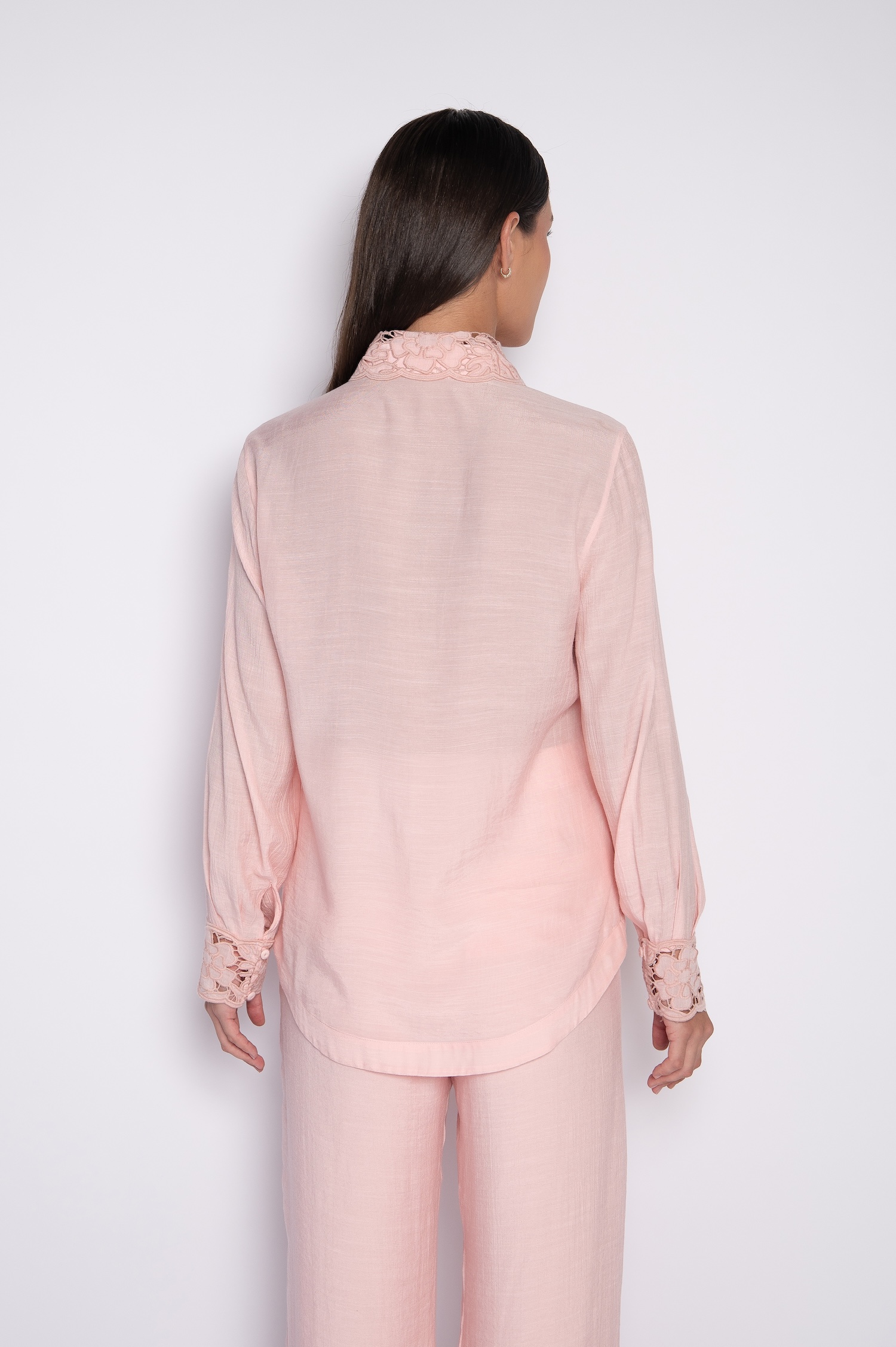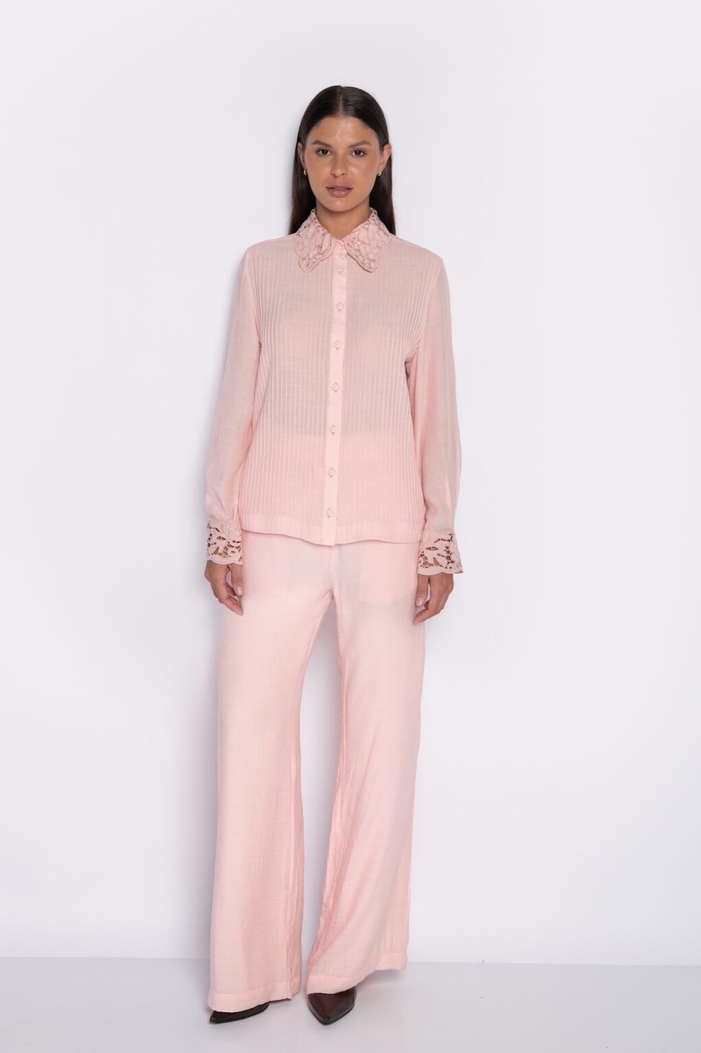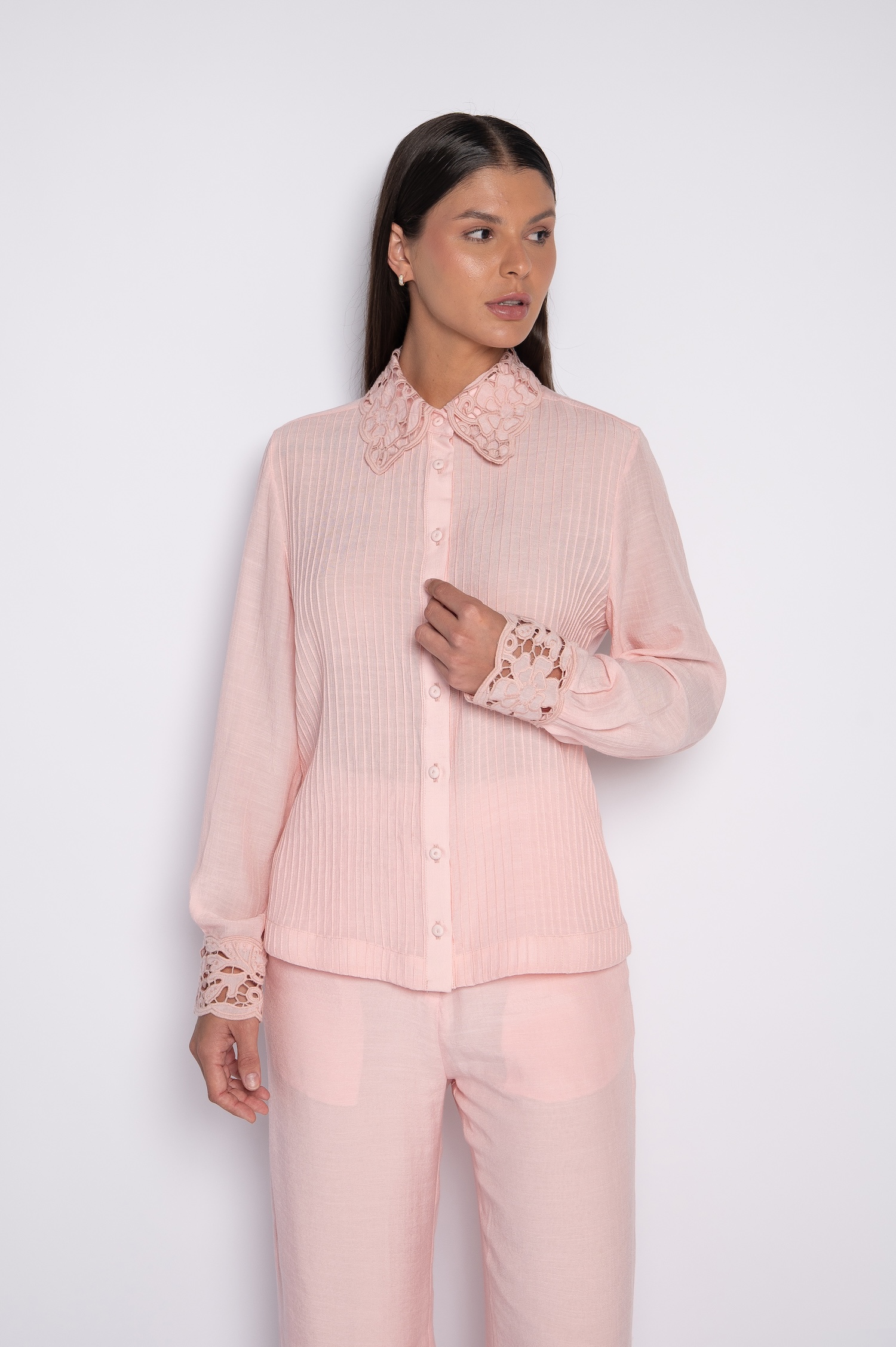 Camisa Bordada com Nervuras Frontais Rosa – Ruth