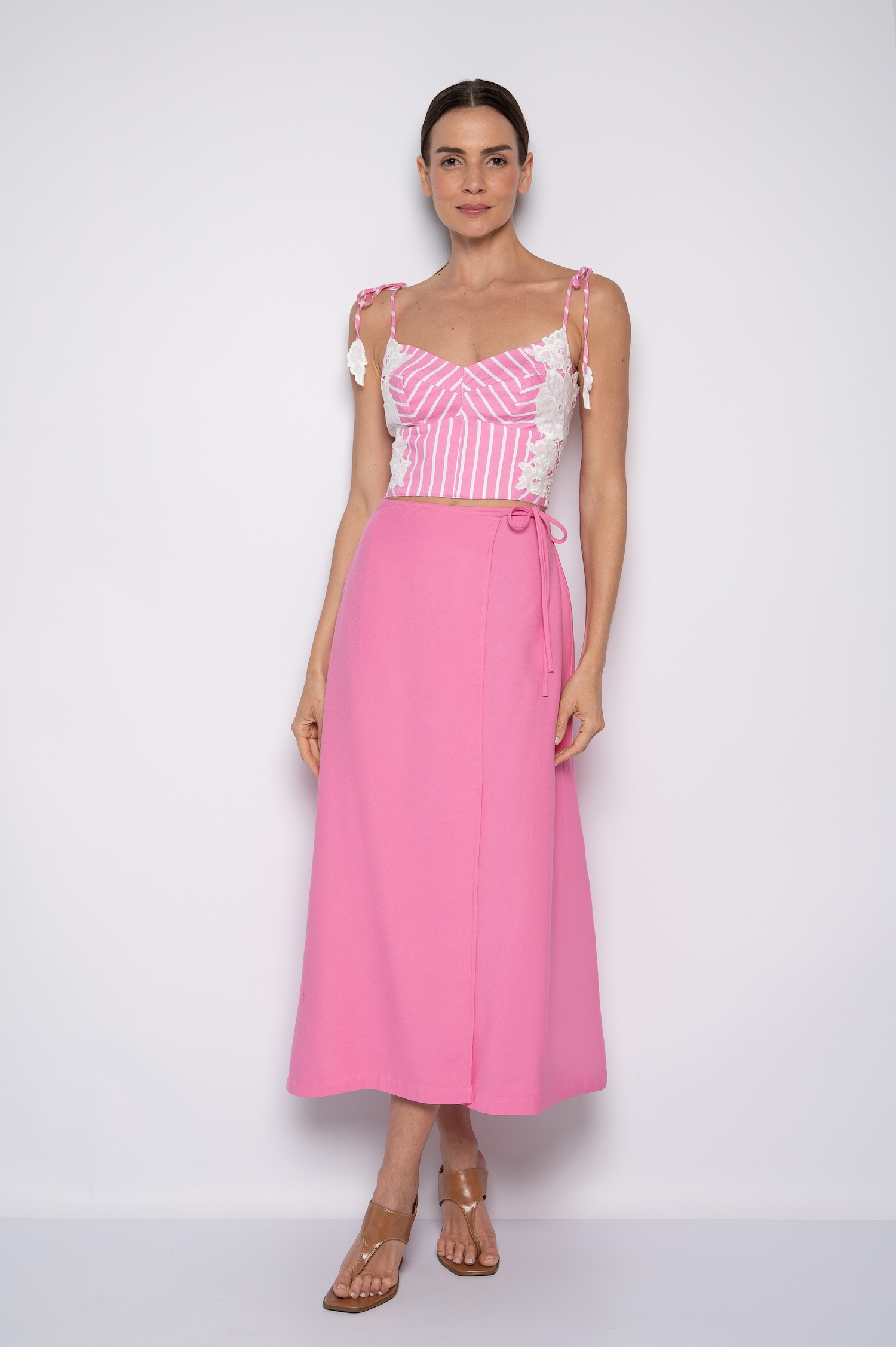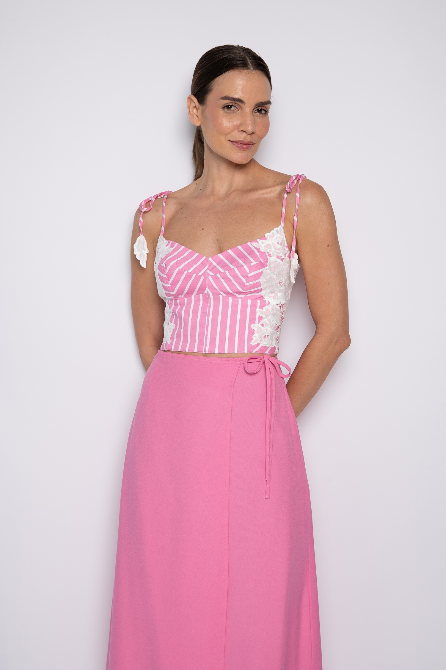 O cropped de listras bordado com amarração é perfeito para quem deseja unir frescor, estilo e charme artesanal em uma única peça.