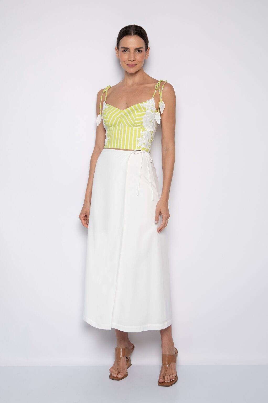 O cropped de listras bordado com amarração é perfeito para quem deseja unir frescor, estilo e charme artesanal em uma única peça.