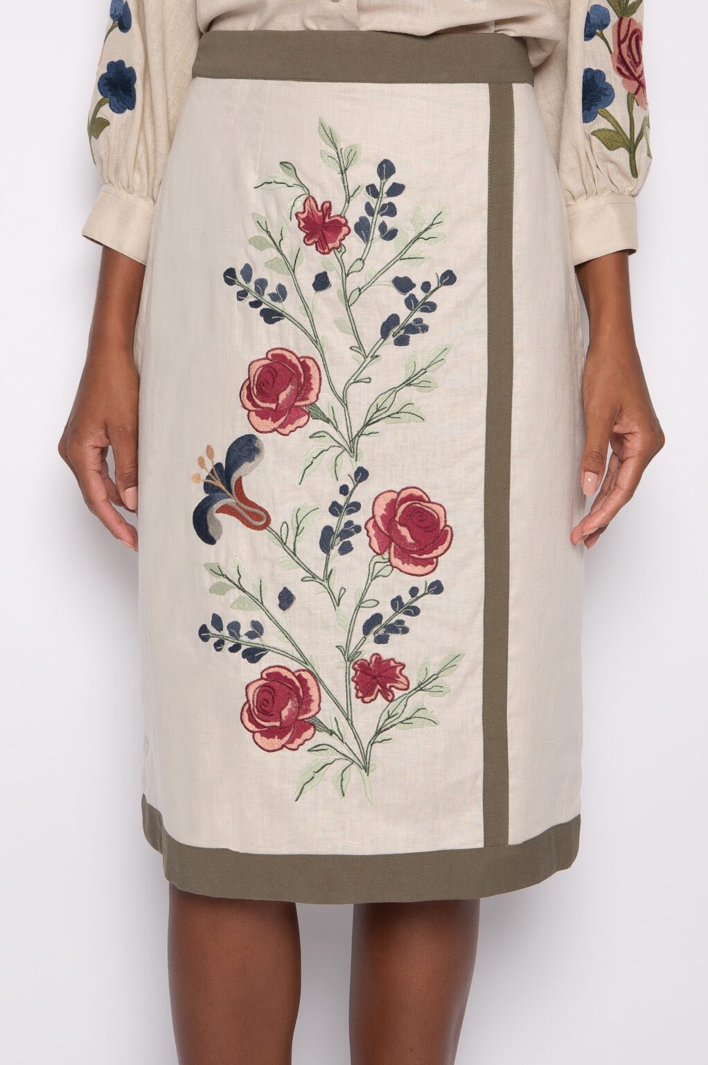 Atualmente, a saia 100% linho midi bordada acompanha tendências da moda consciente.