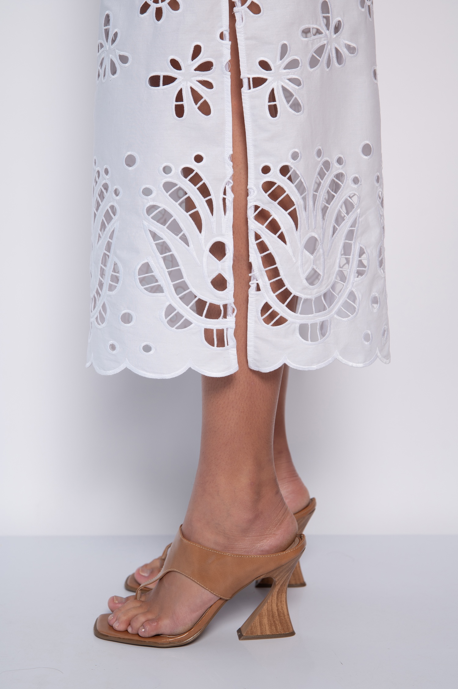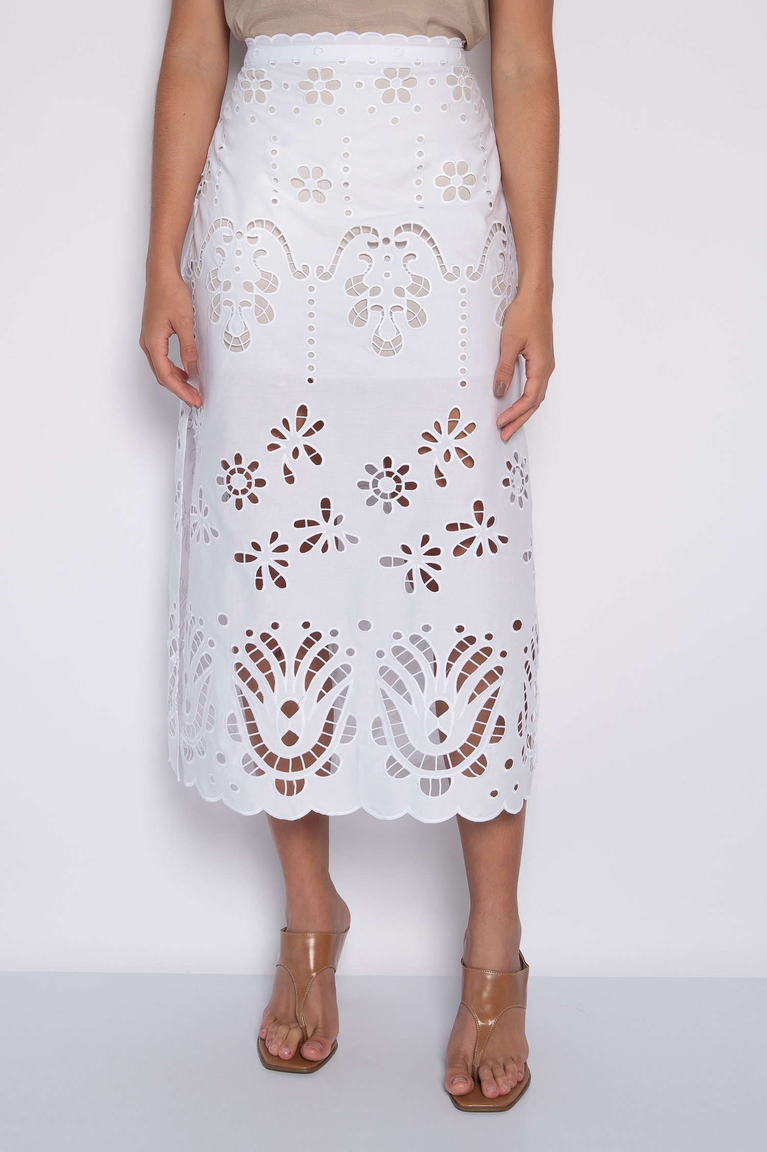 Saia Midi Bordada com Fendas Laterais Branco – Gabriela