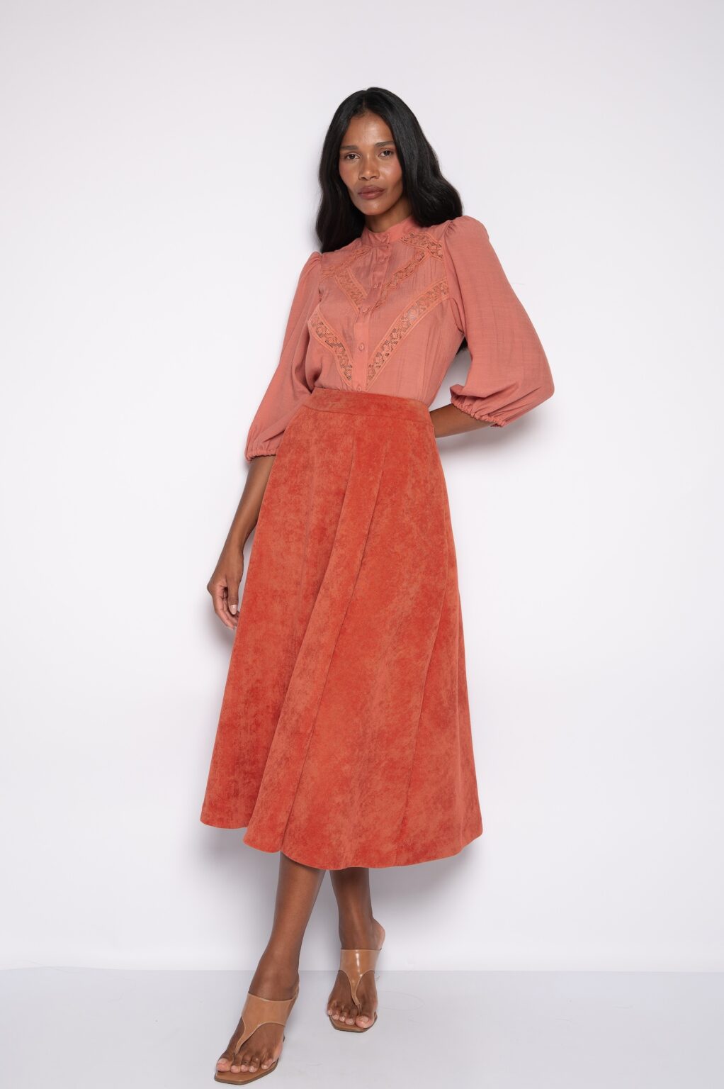 Saia Midi Godê Urucum – Rebeca
