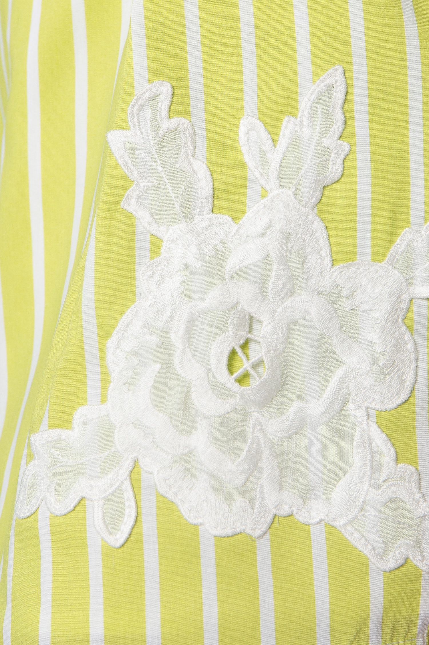 O short curto listras bordado lateral pode ser facilmente combinado com blusas leves, camisas de linho ou croppeds estruturados.