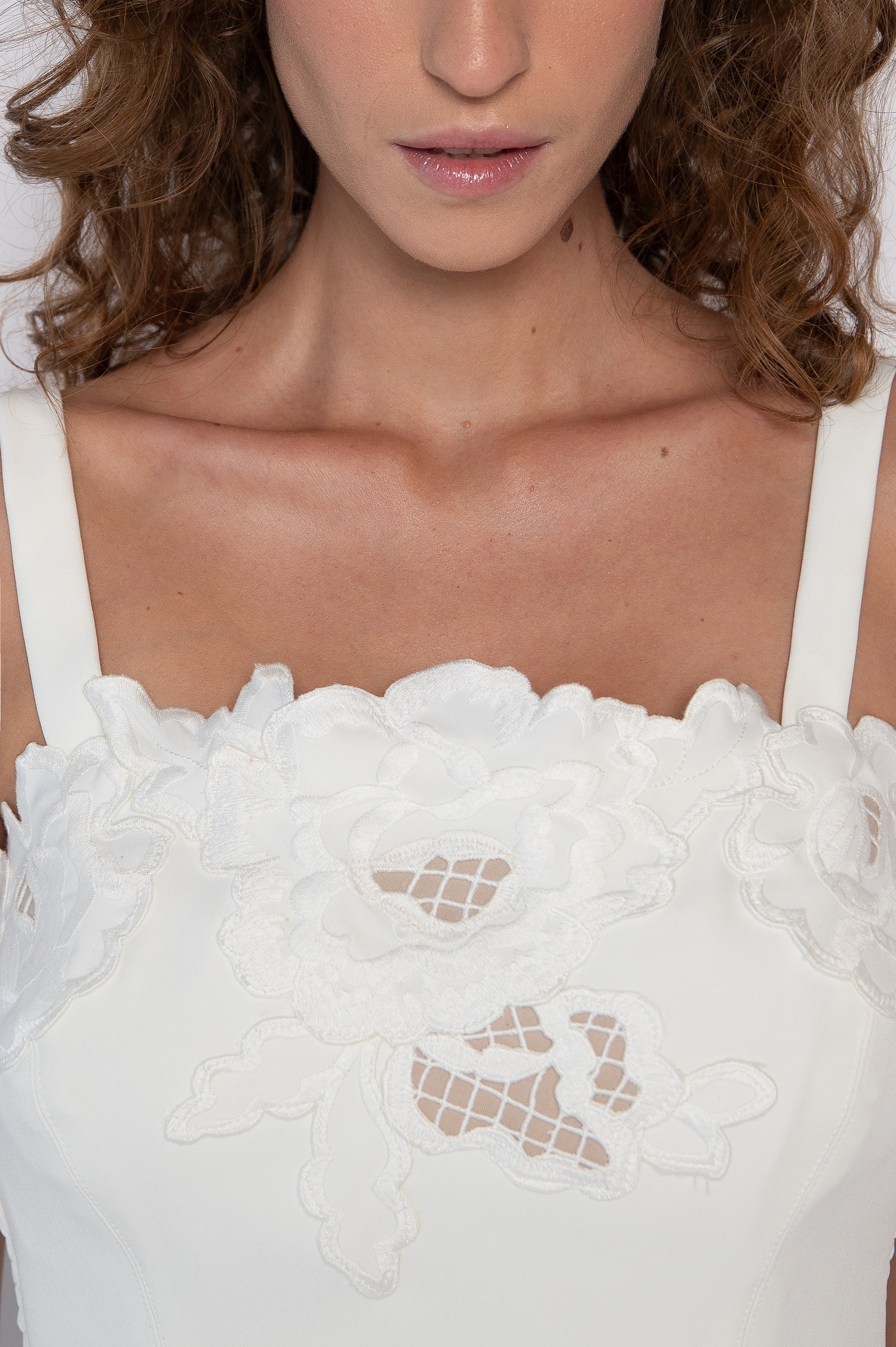 O destaque do top bordado com alças está na aplicação do bordado, cuidadosamente trabalhada para criar um efeito visual delicado e exclusivo. Cada ponto evidencia o trabalho manual e a atenção aos detalhes. Assim, o resultado é uma peça única, cheia de personalidade.