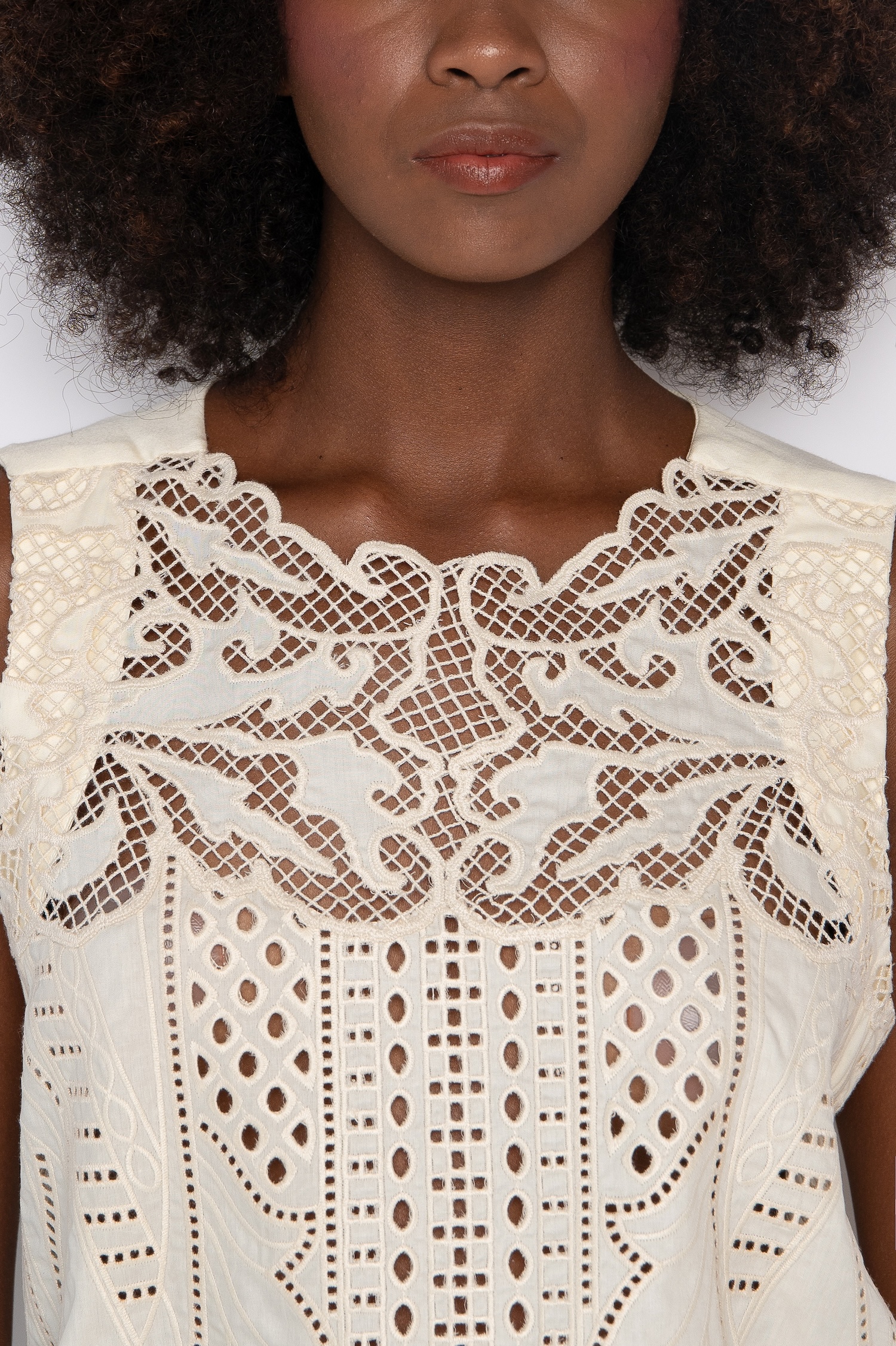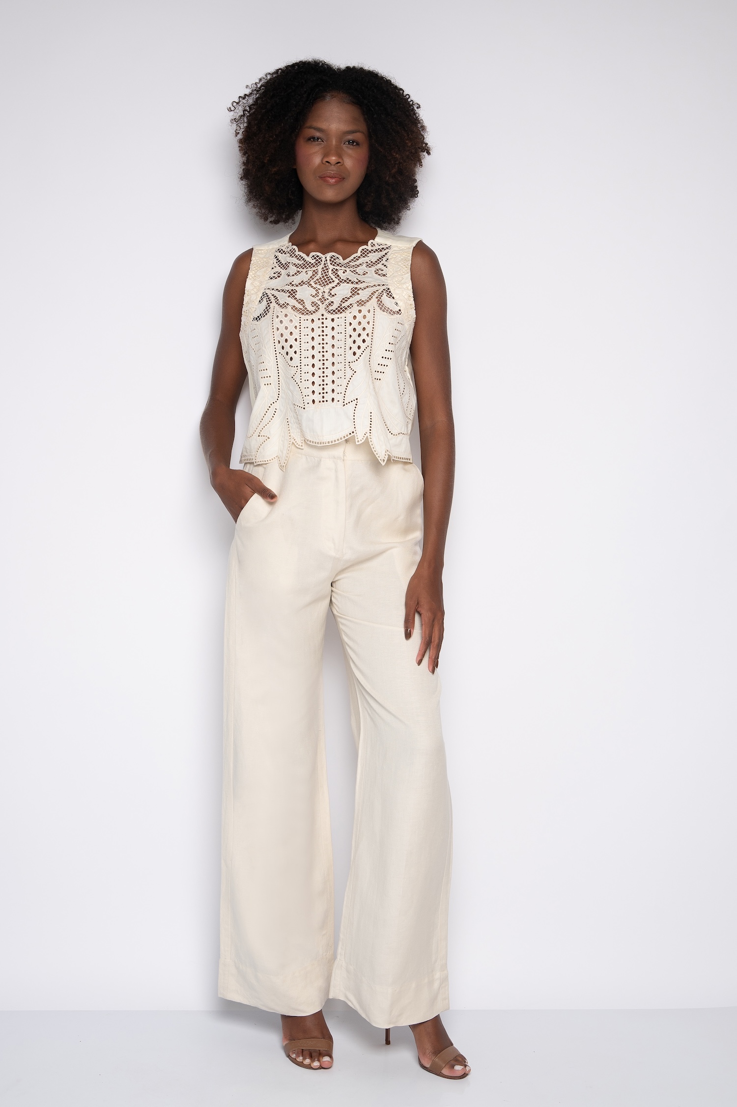 O top cavado bordado combina perfeitamente com saias, shorts ou calças. Dessa maneira, você amplia suas possibilidades de looks.