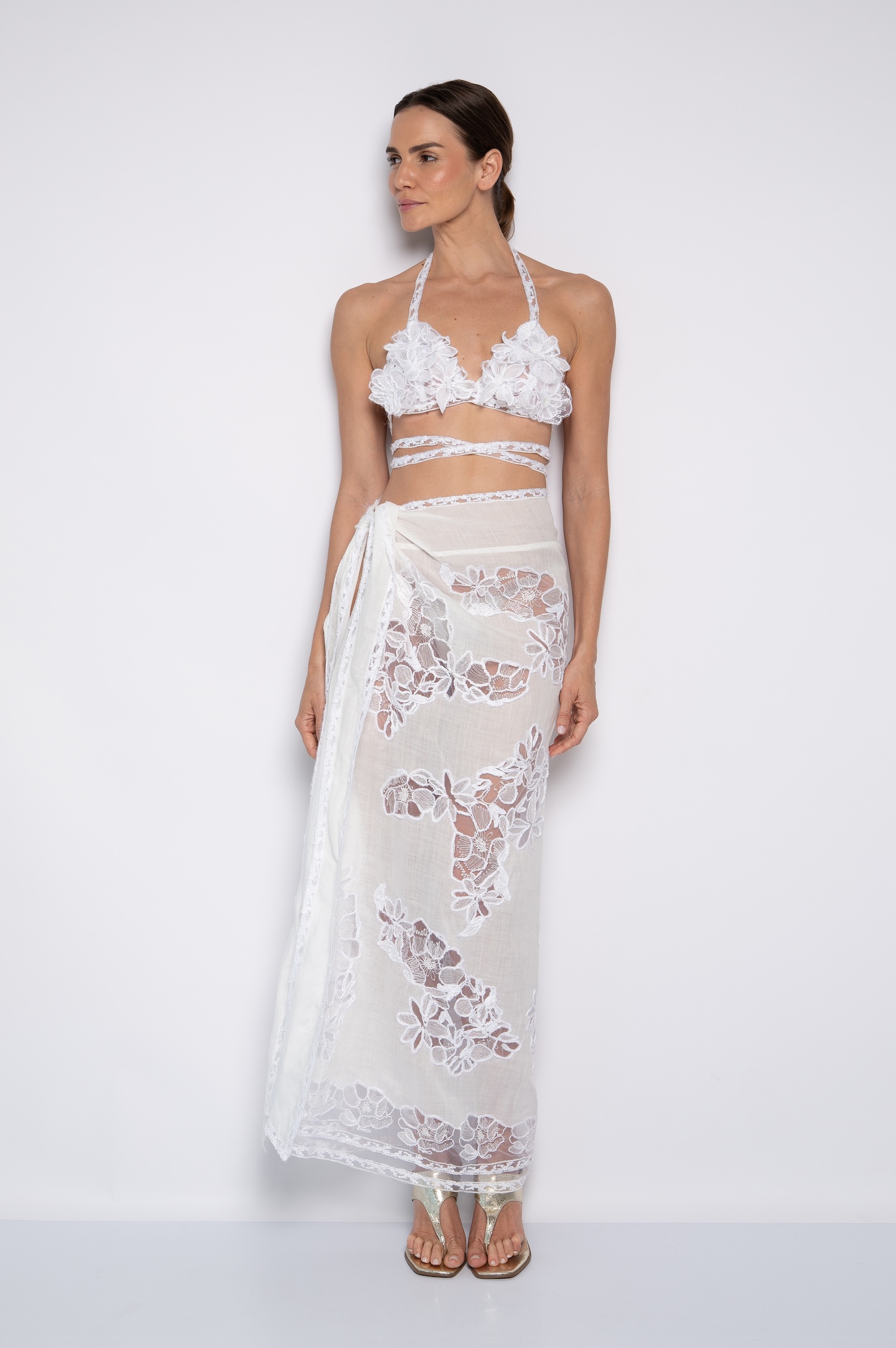 Top Bordado Em Tule Com Aplicações E Amarração Off White – Flora