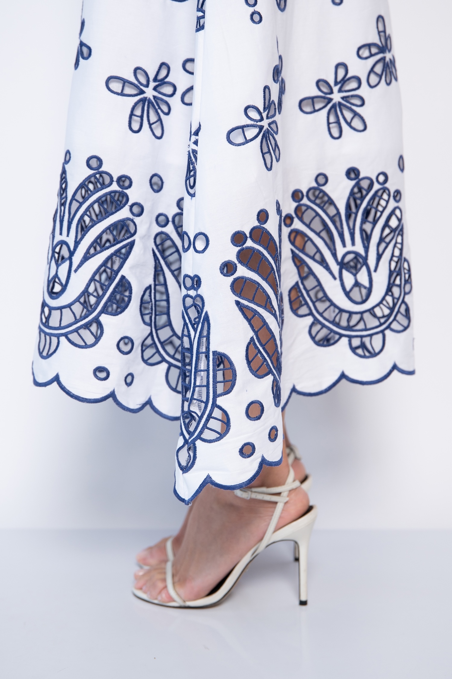 Vestido Midi Bordado Com decote V branco/Azul – Diva