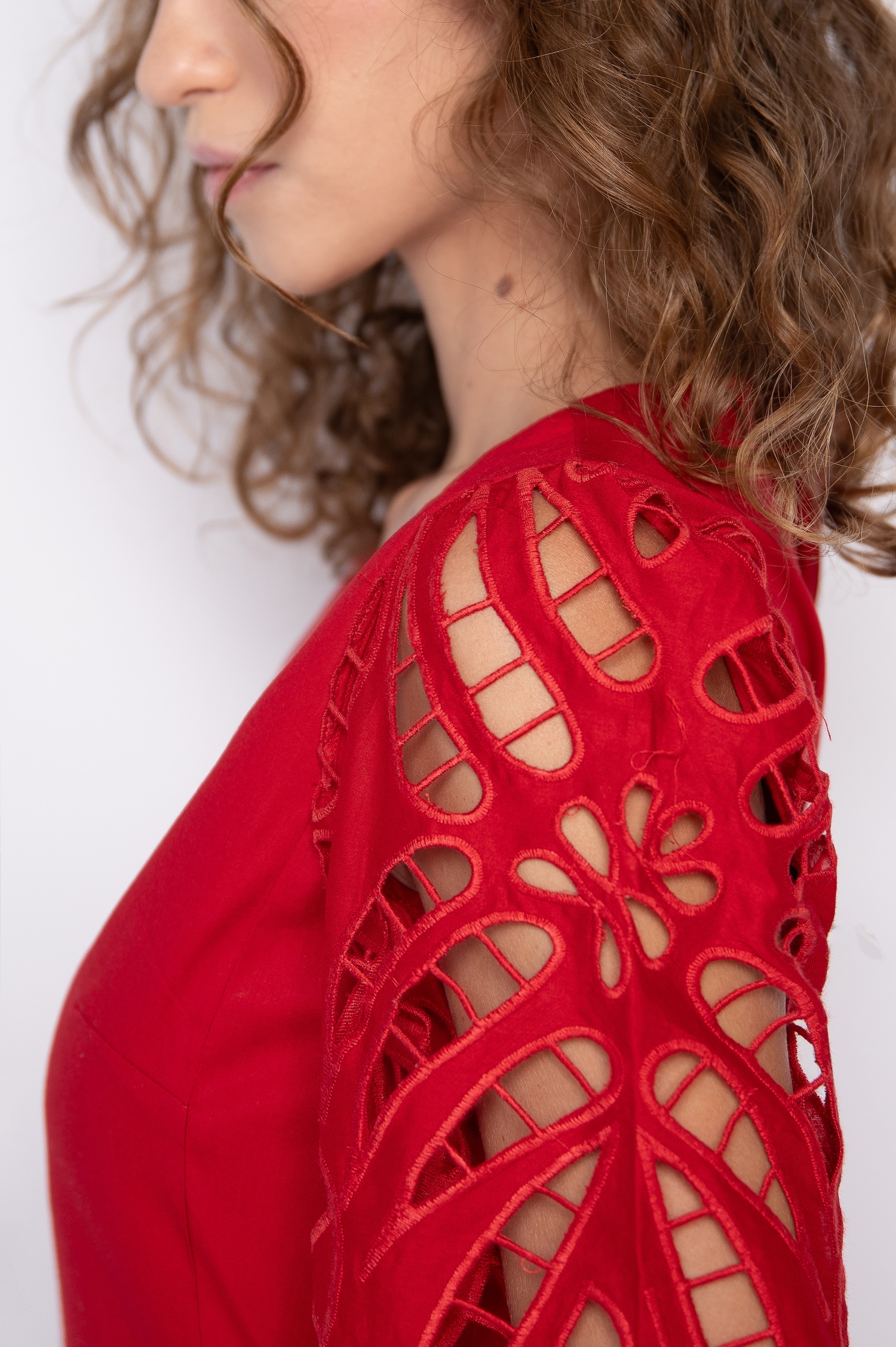 Vestido Bordado Midi Evasê Vermelho – Cristiane