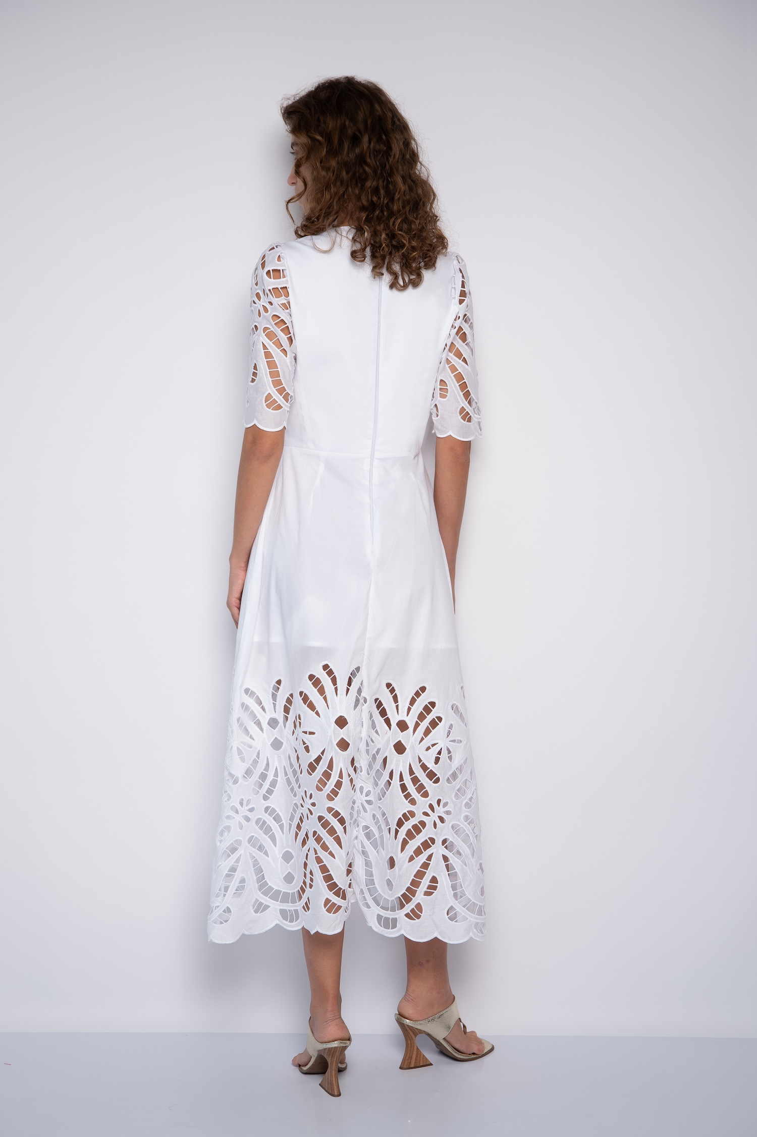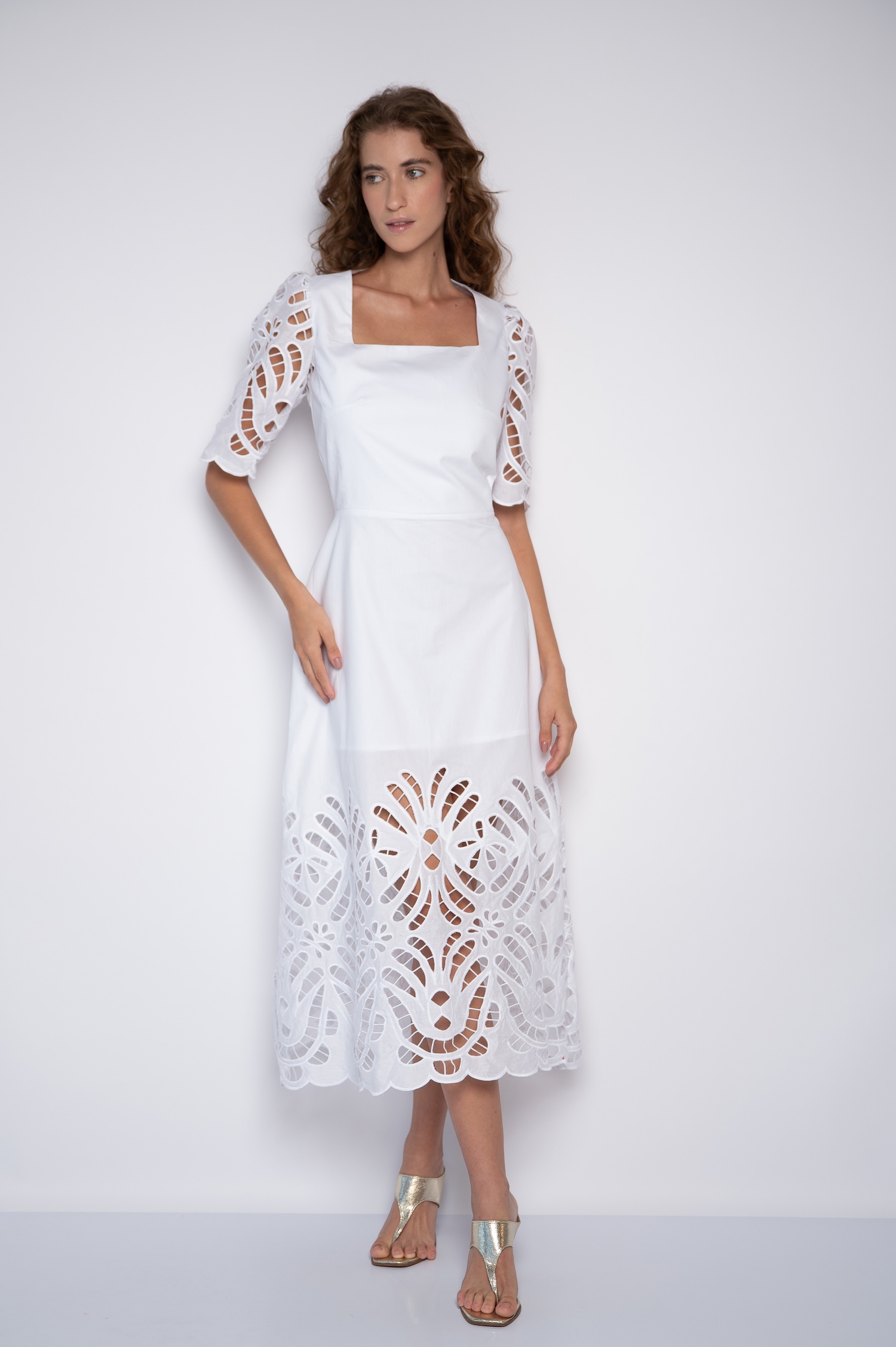 Vestido Bordado Midi Evasê Branco – Cristiane