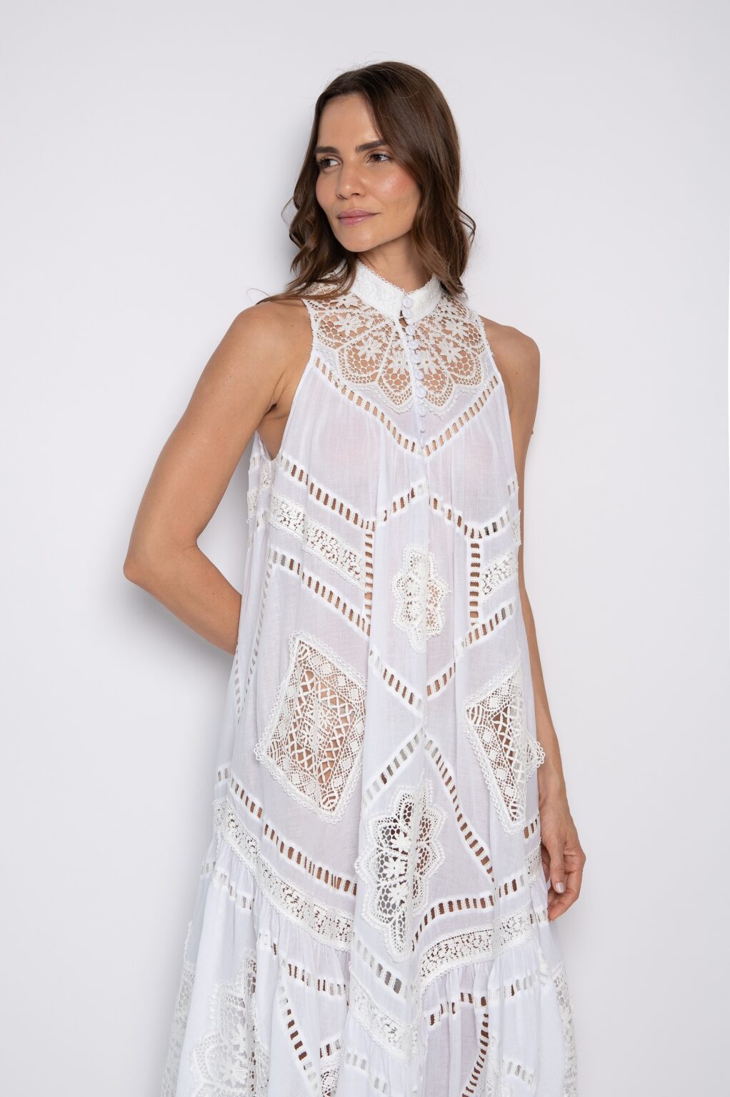 Vestido branco longo bordado em Richelieu – Soraia