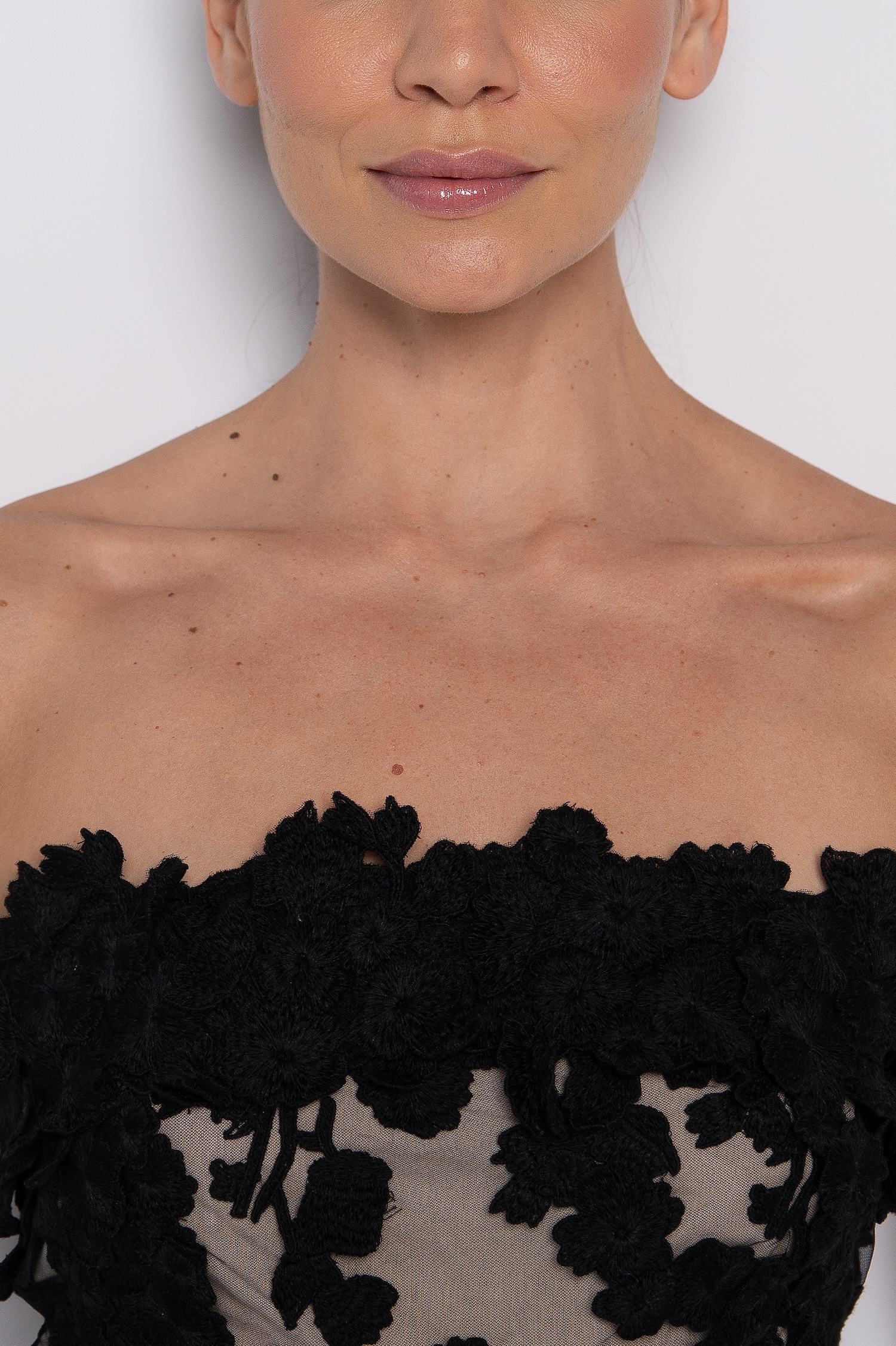 Vestido Bordado Midi Sem Alças Preto – Gisele