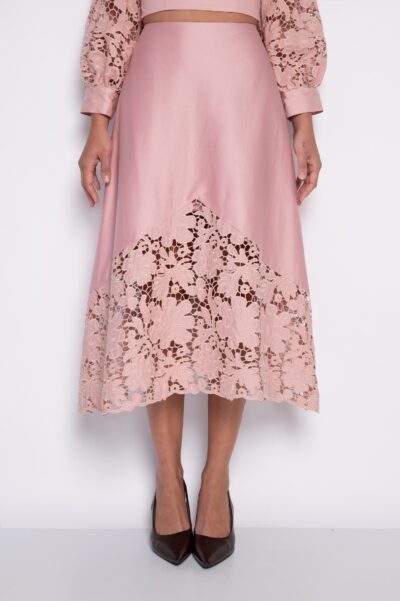 Saia Midi Bordada Rosa – Rúbia